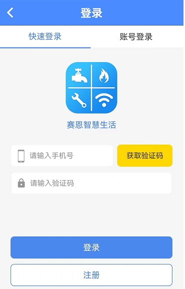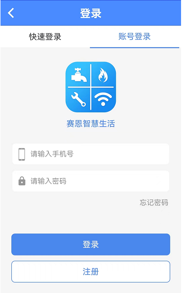 打開智慧生活A(yù)PP,可以以“快速登錄”或“賬號登錄”兩種方式登錄。“快速登錄”需要輸入手機(jī)號、獲取驗證碼之后,輸入驗證碼直接登錄。“賬號登錄”需要輸入已注冊的手機(jī)號以及密碼進(jìn)行登錄。如圖