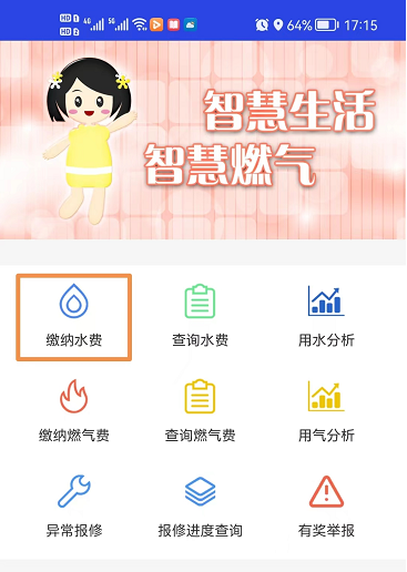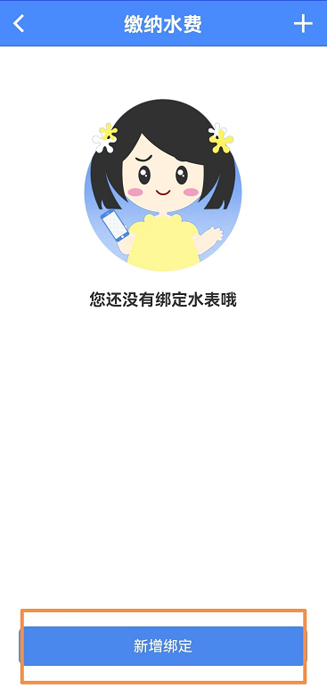 點擊首頁上的繳納水費,進(jìn)入繳納水費界面。首次進(jìn)入需綁定表具,如圖
