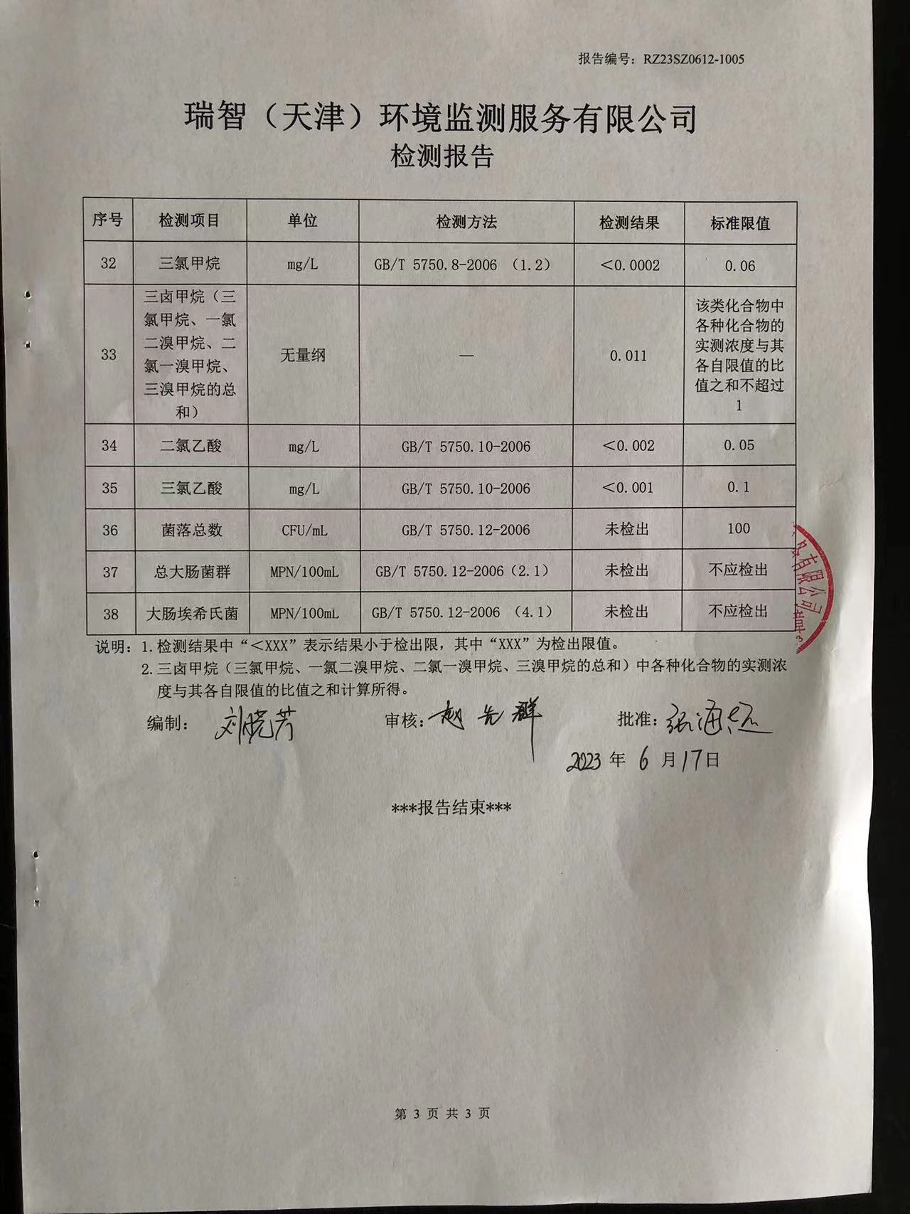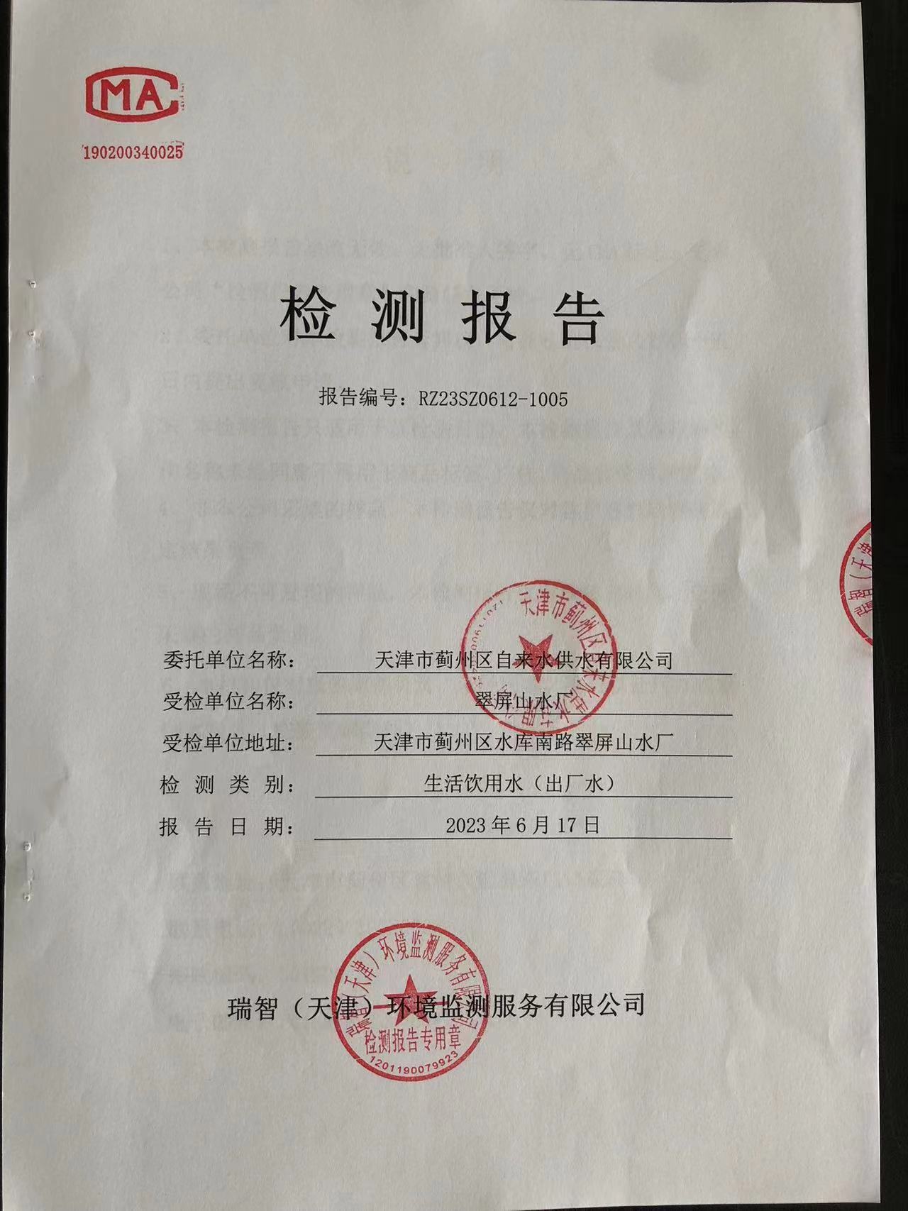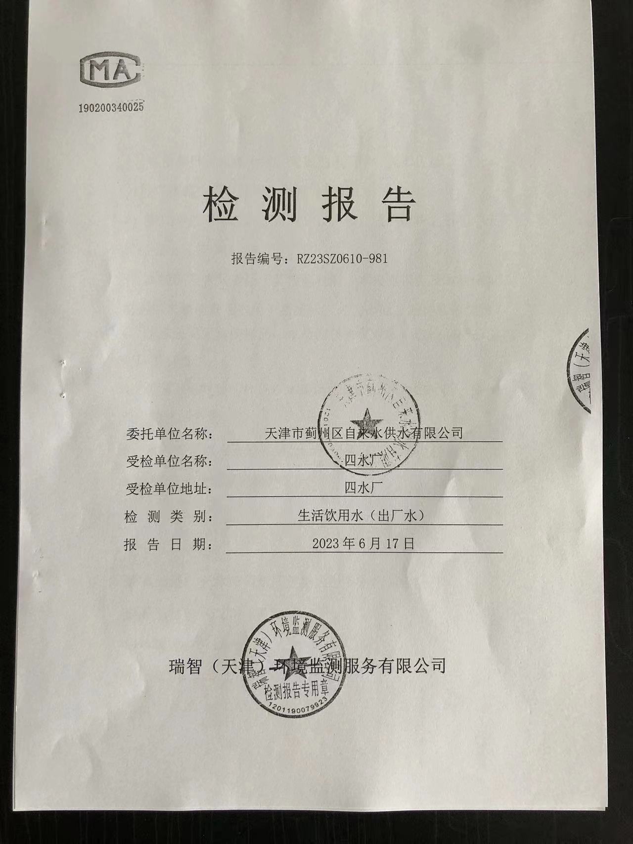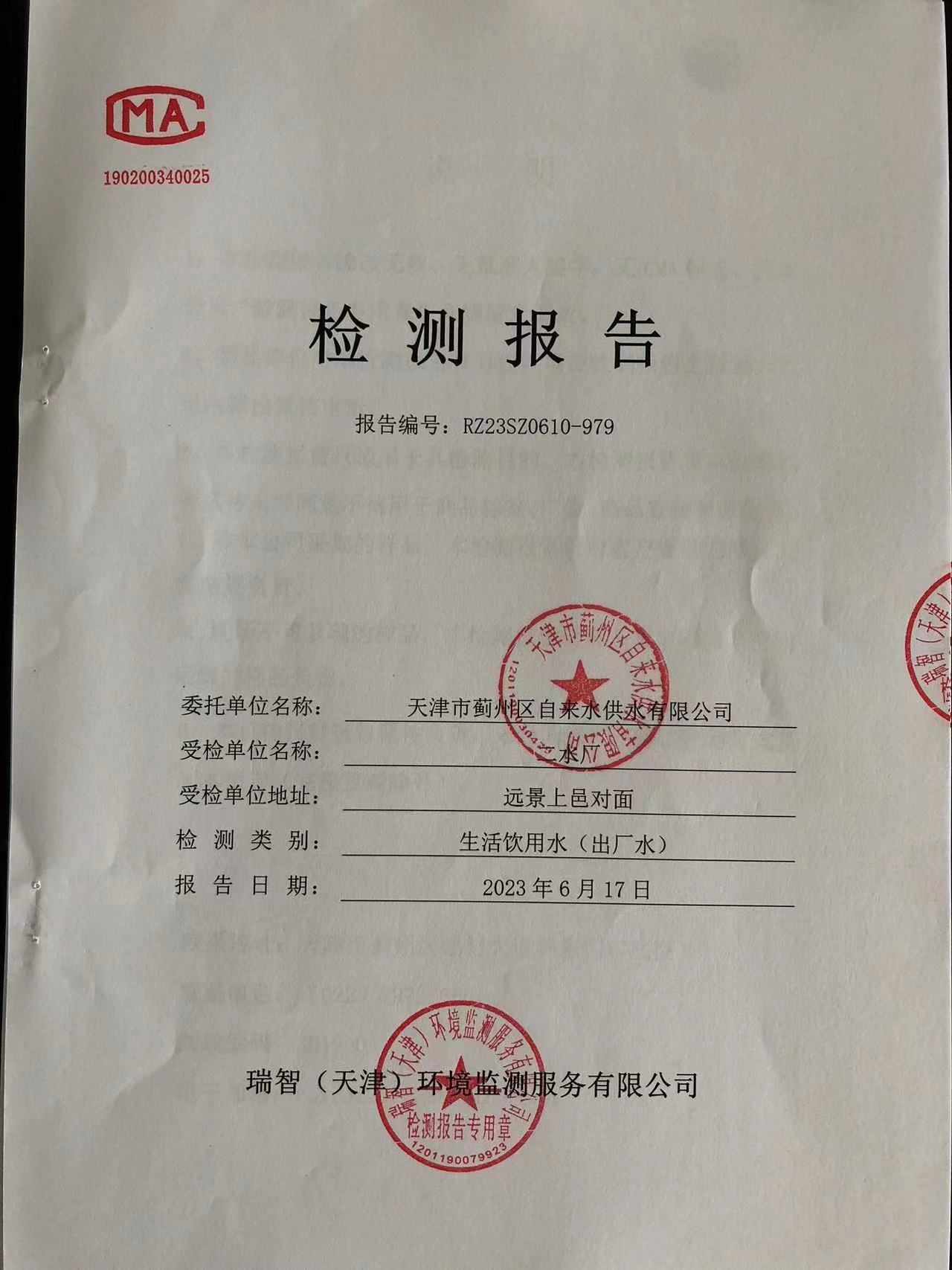 2023年6月份水質(zhì)檢測(cè)報(bào)告