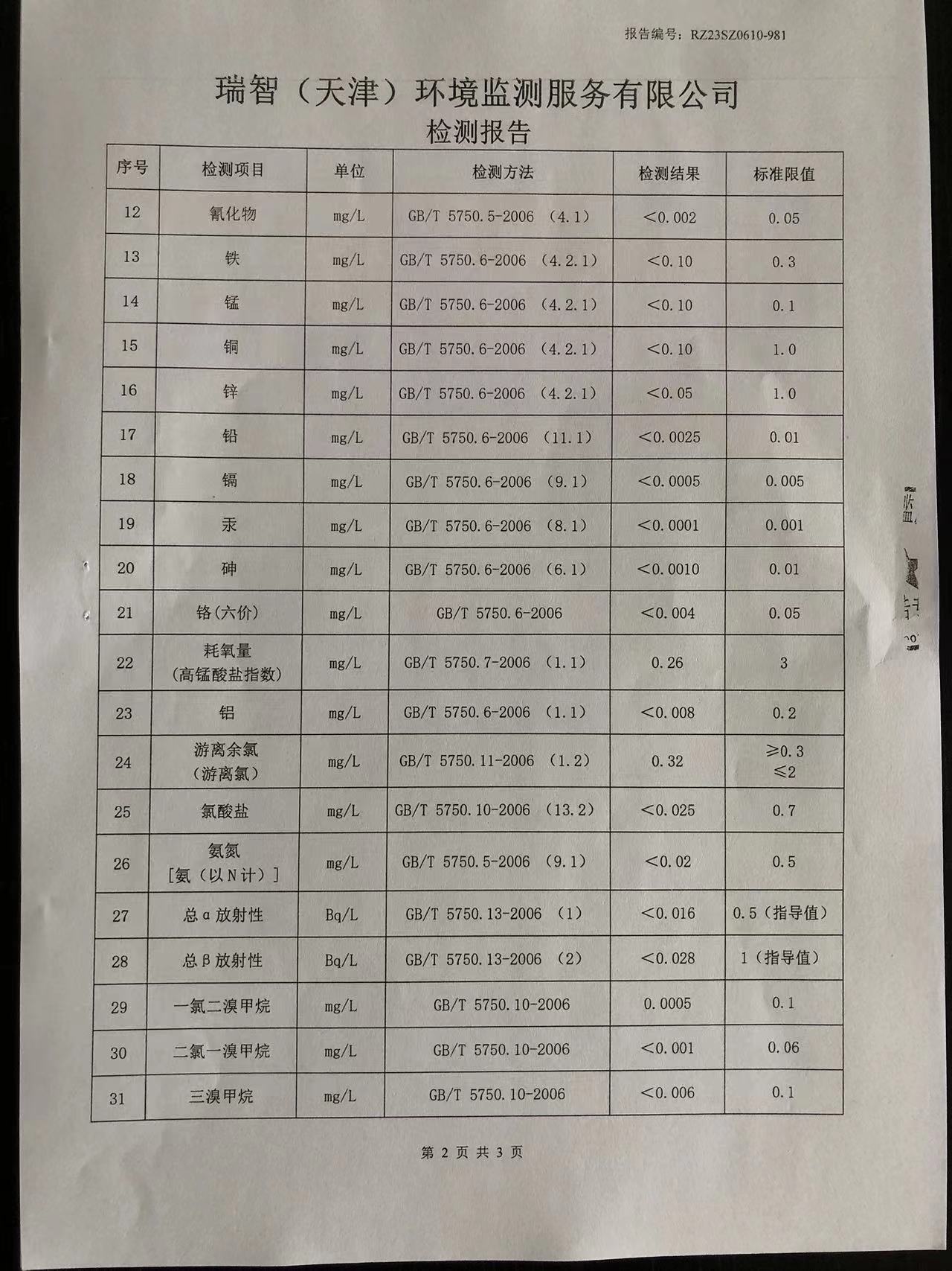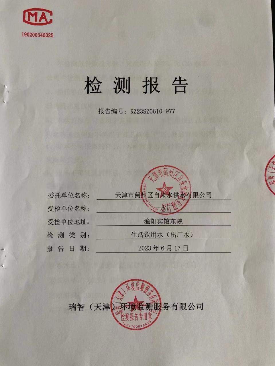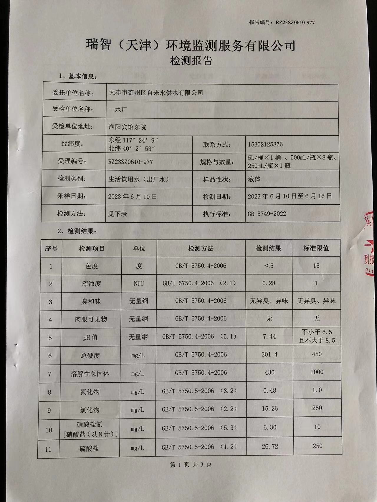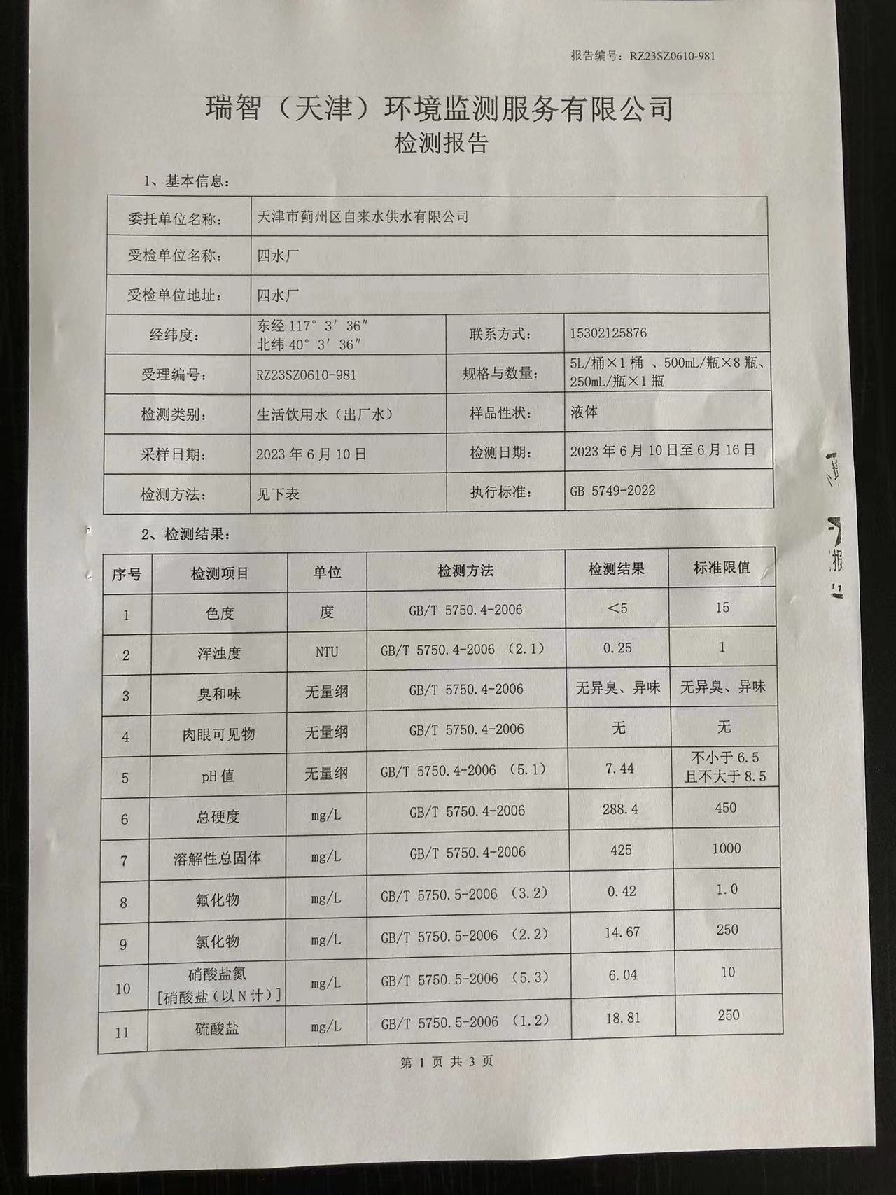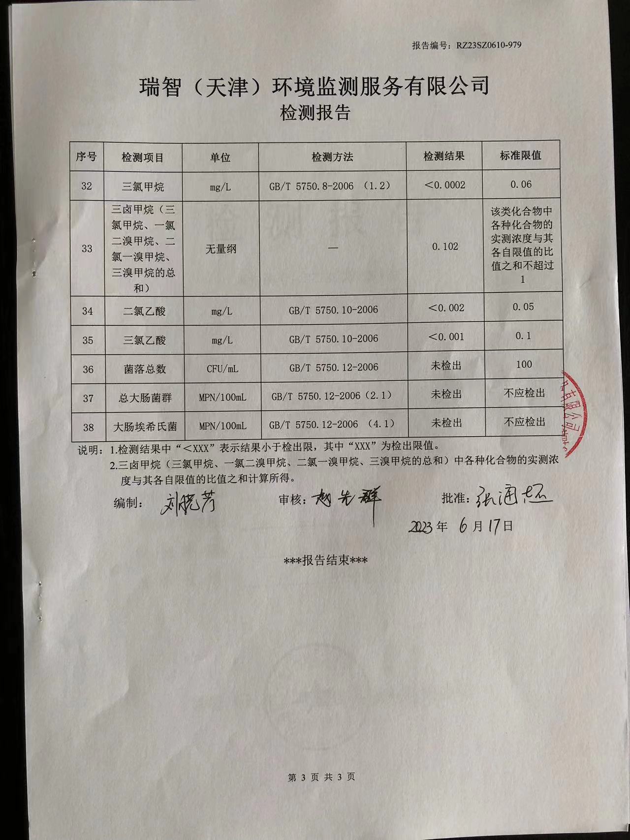 2023年6月份水質(zhì)檢測(cè)報(bào)告