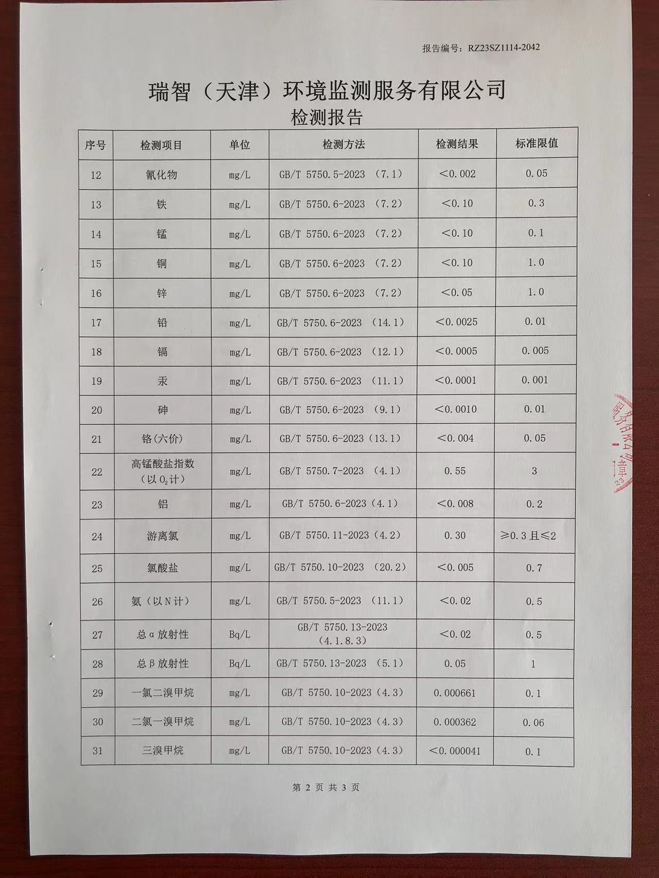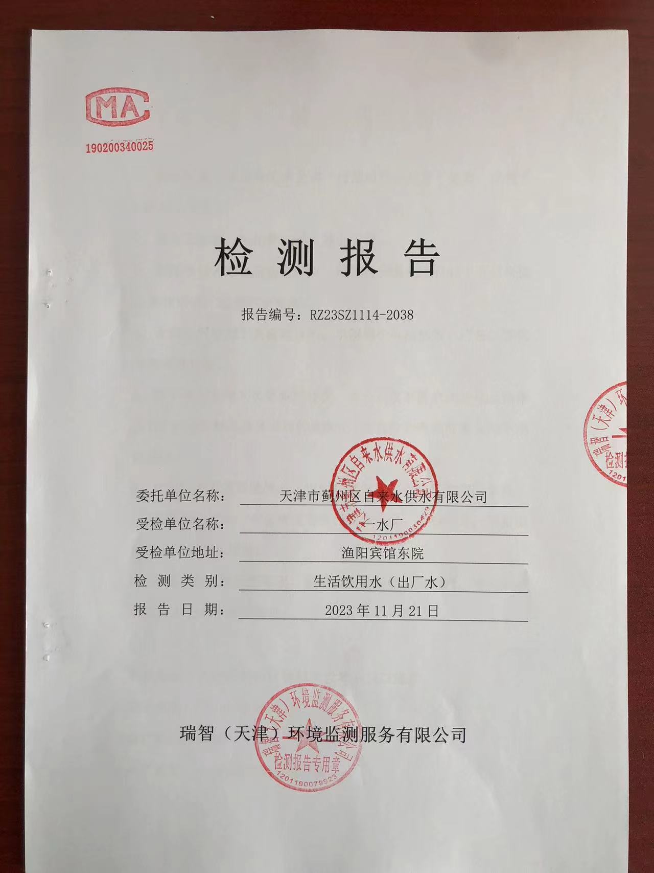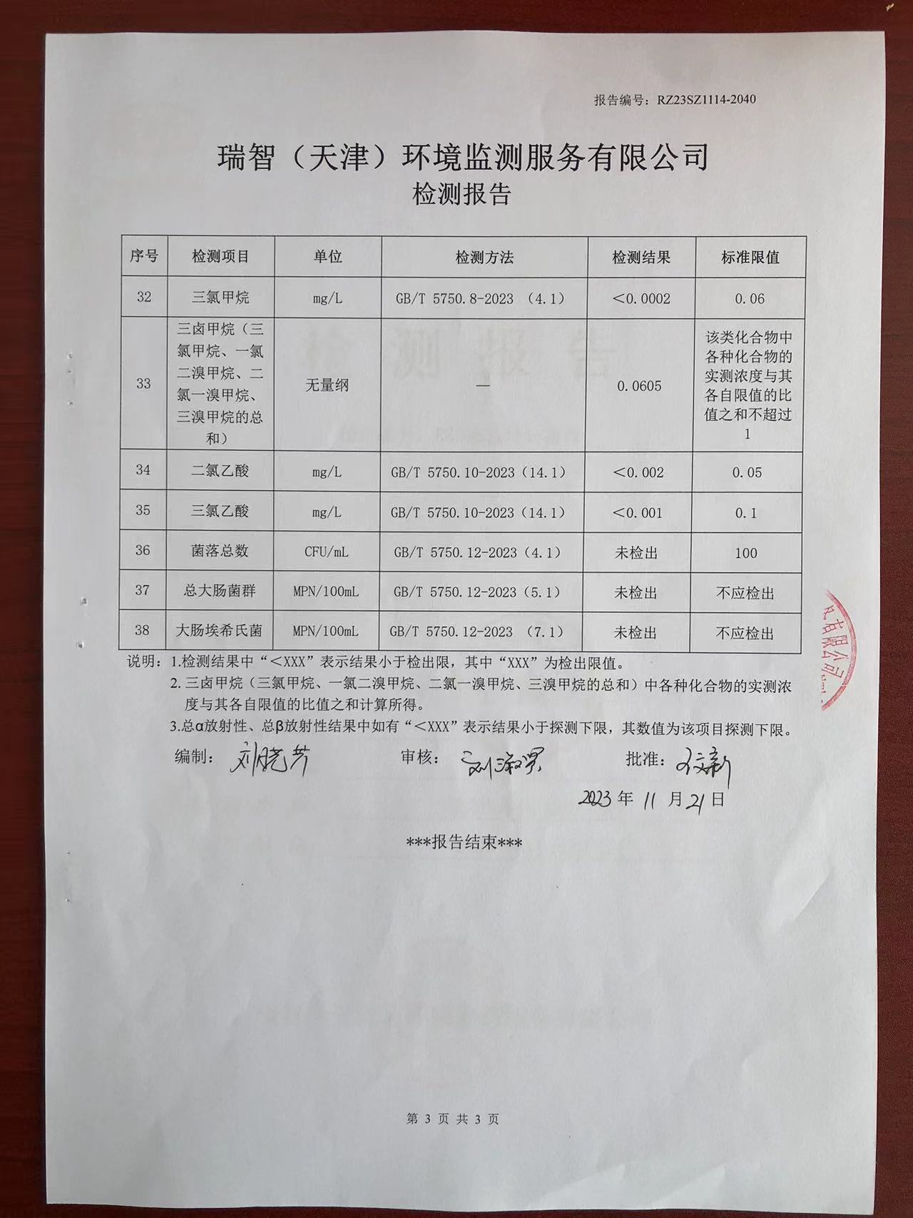 2023年11月份水質(zhì)檢測(cè)報(bào)告