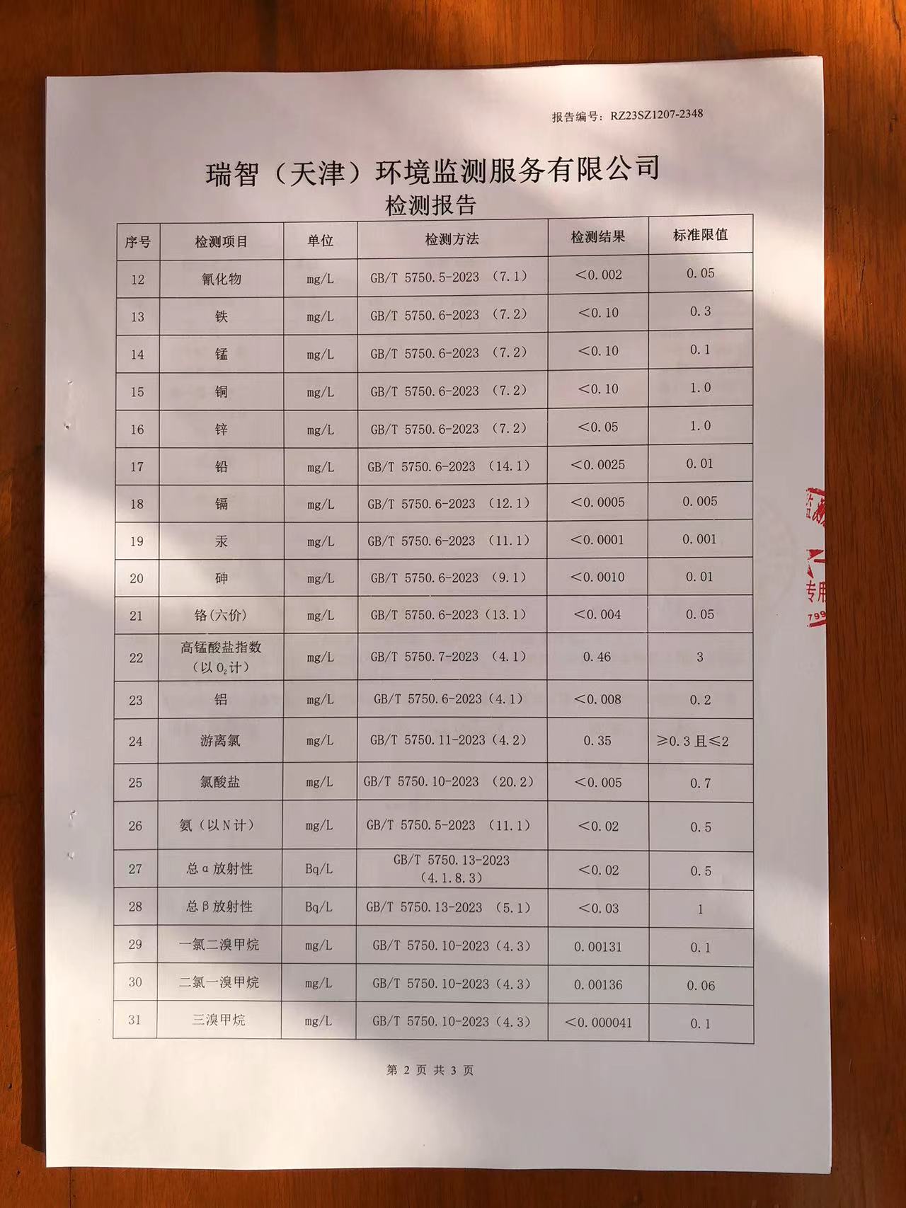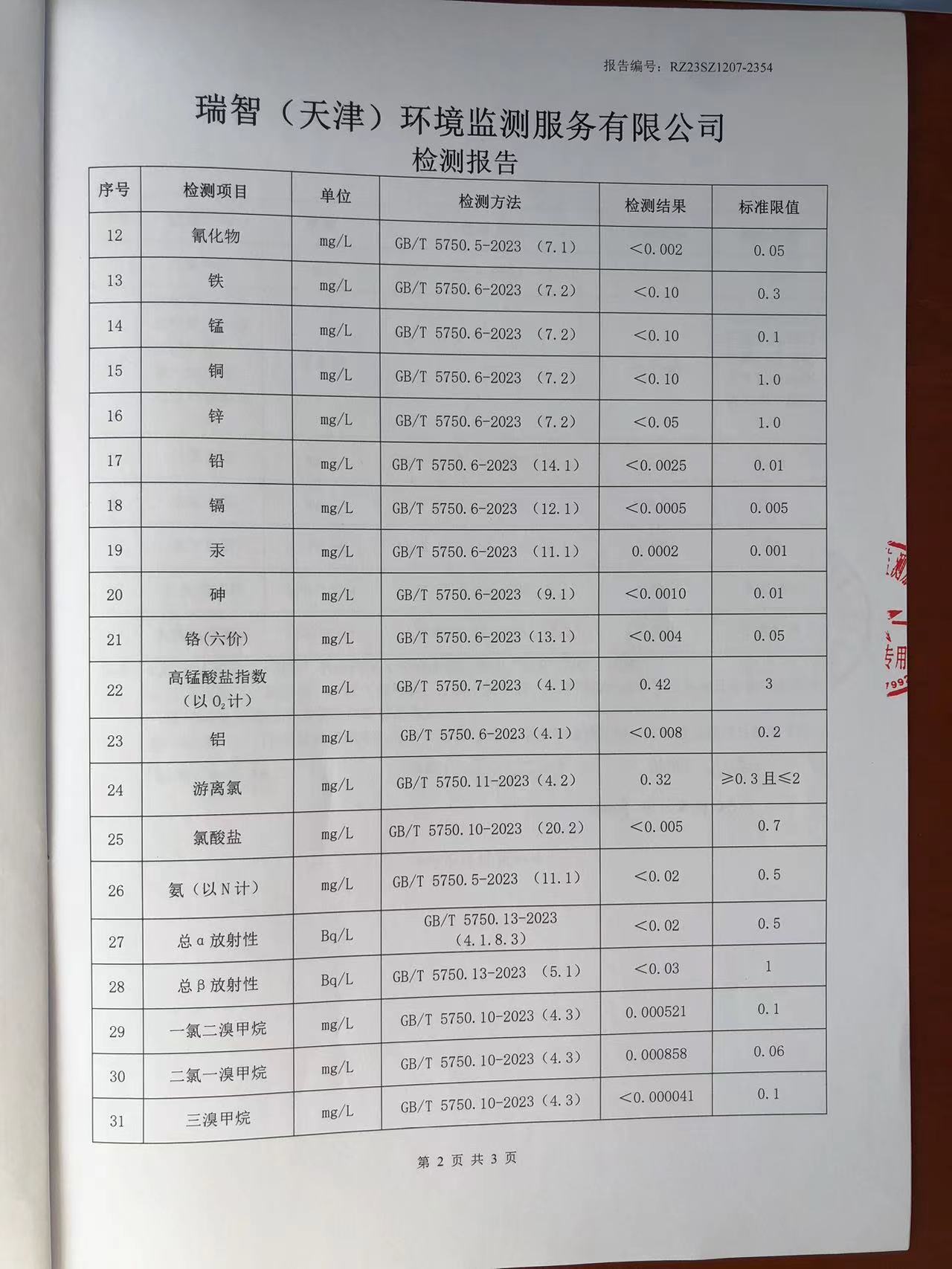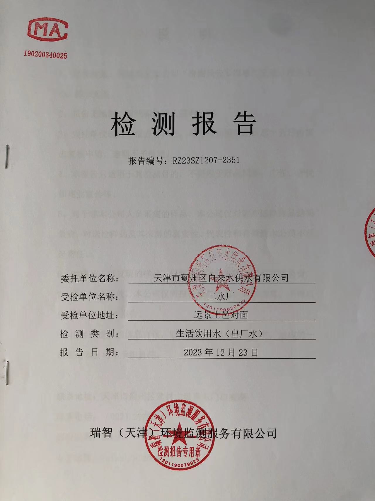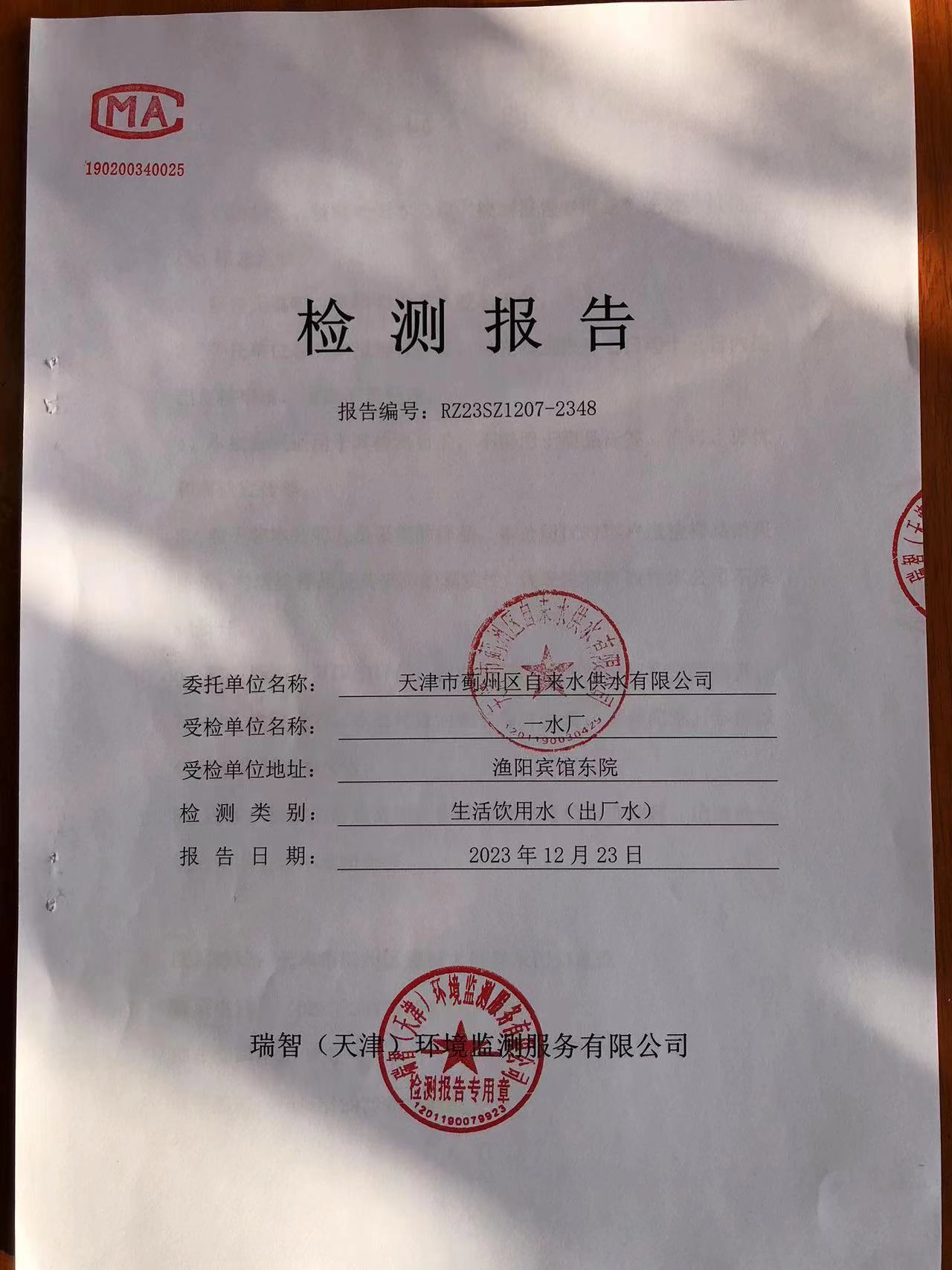 2023年12月份水質檢測報告