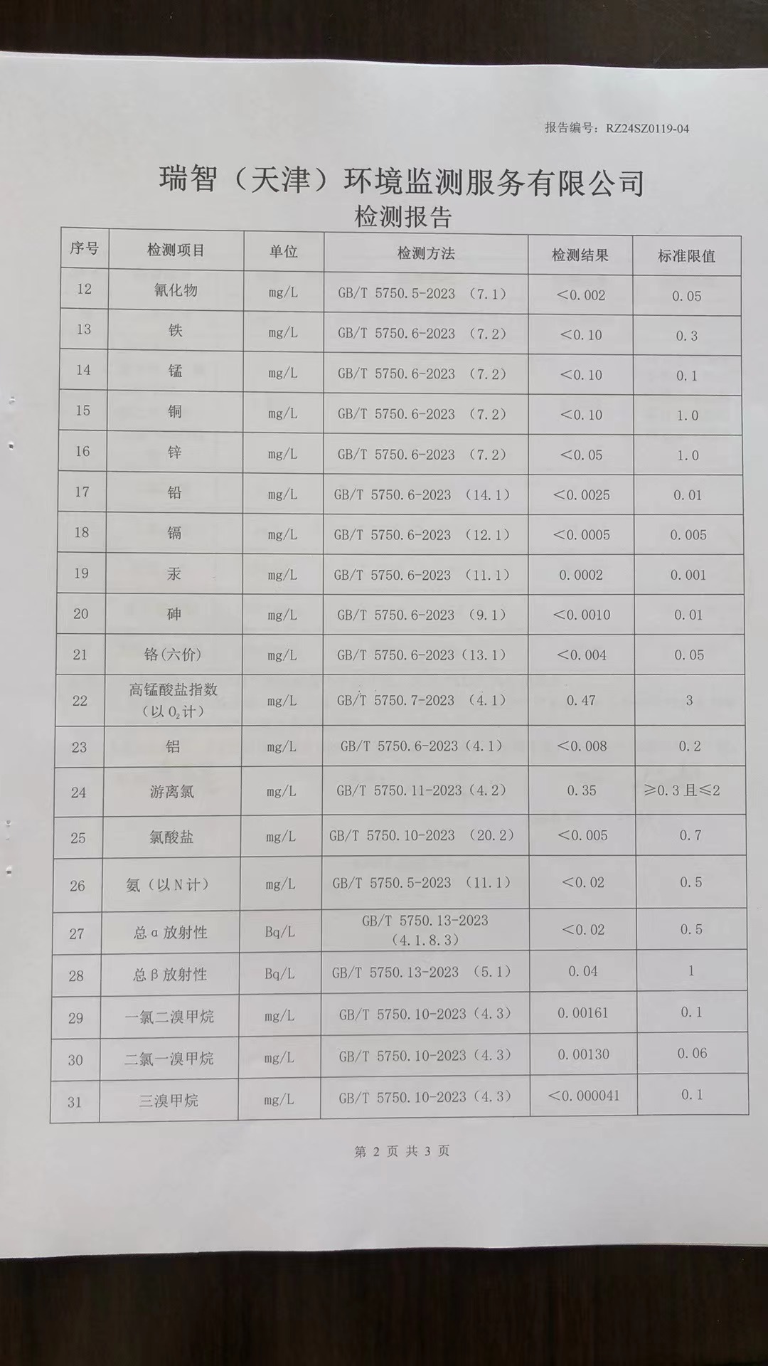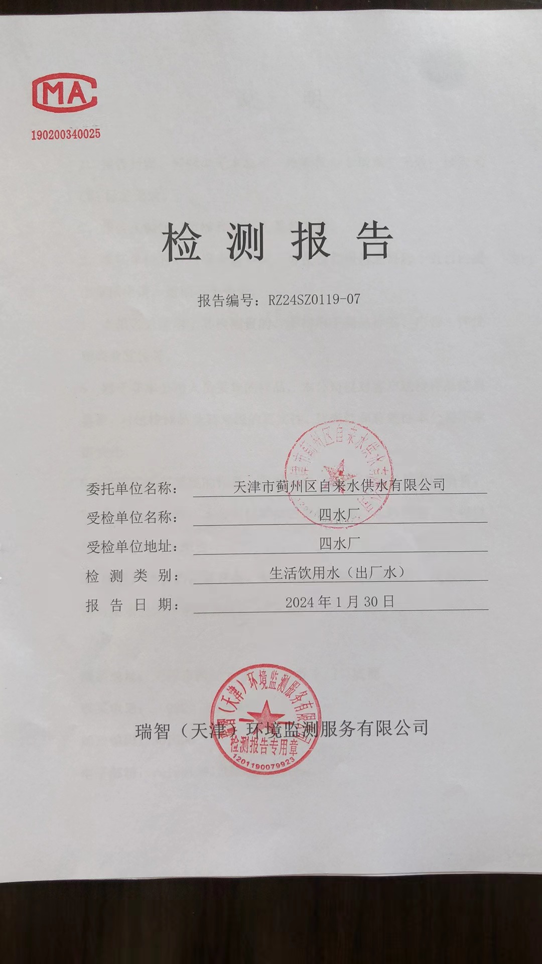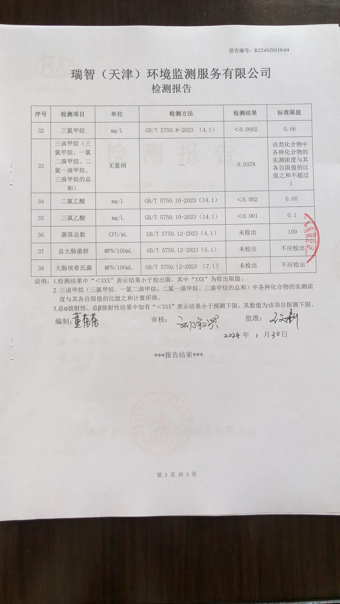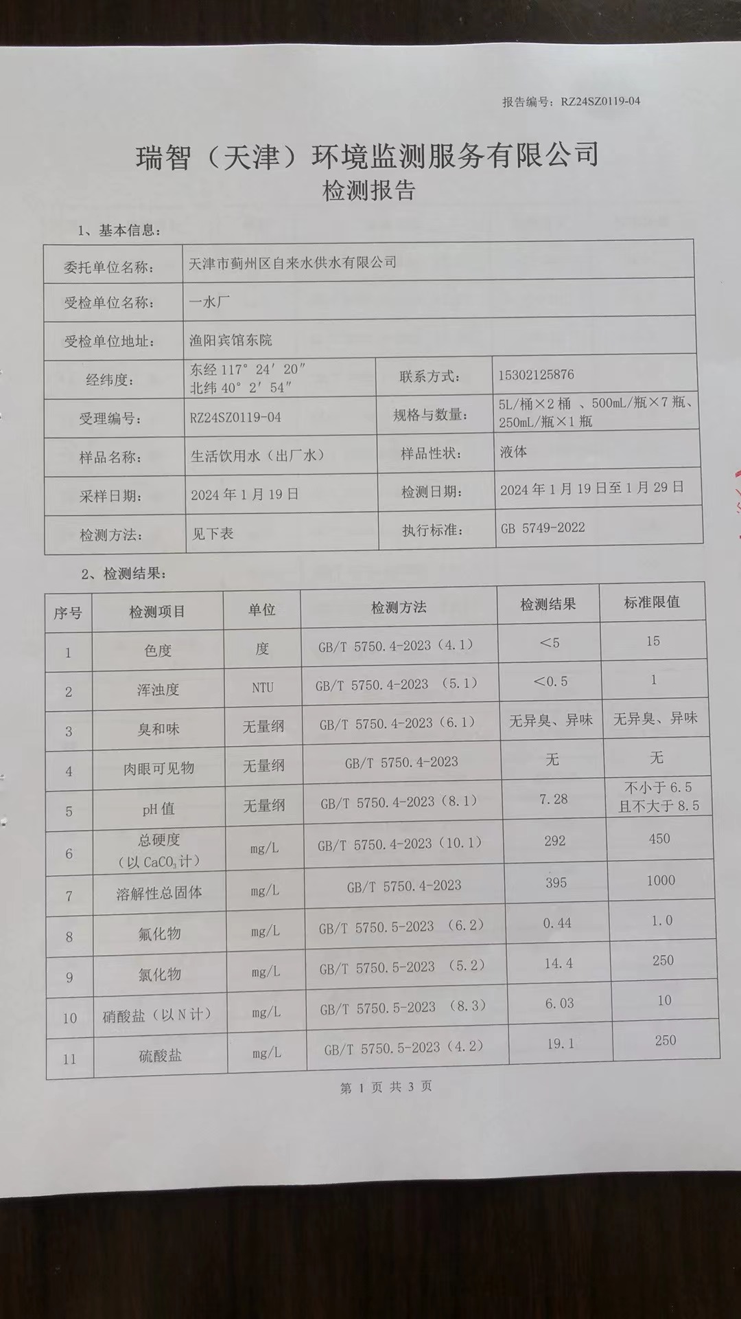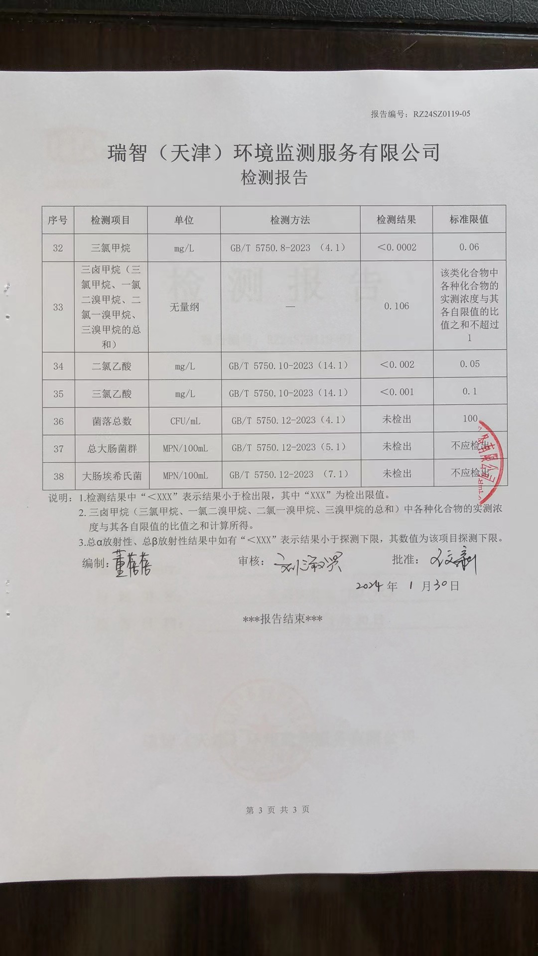 2024年1月份水質(zhì)檢測(cè)報(bào)告