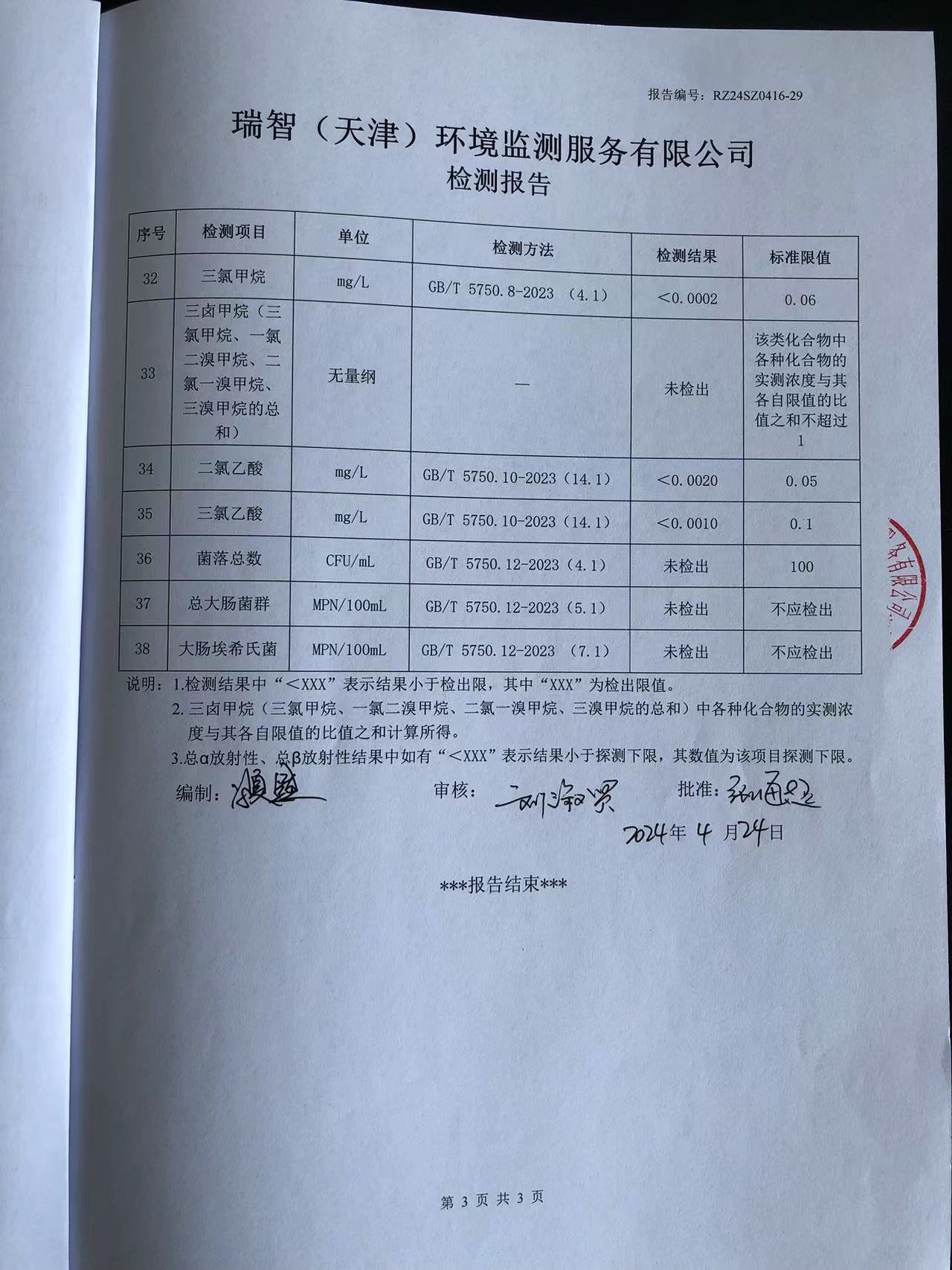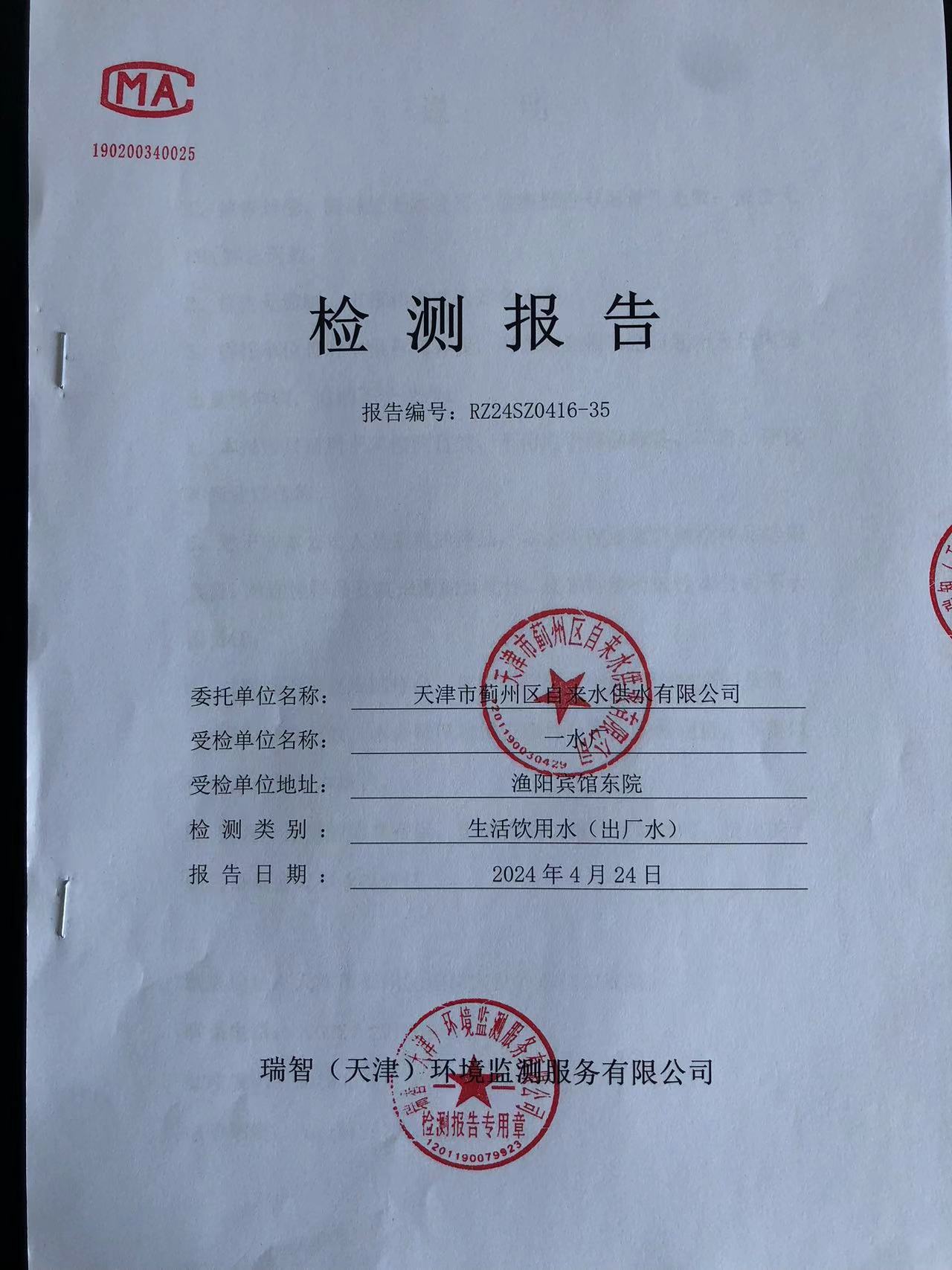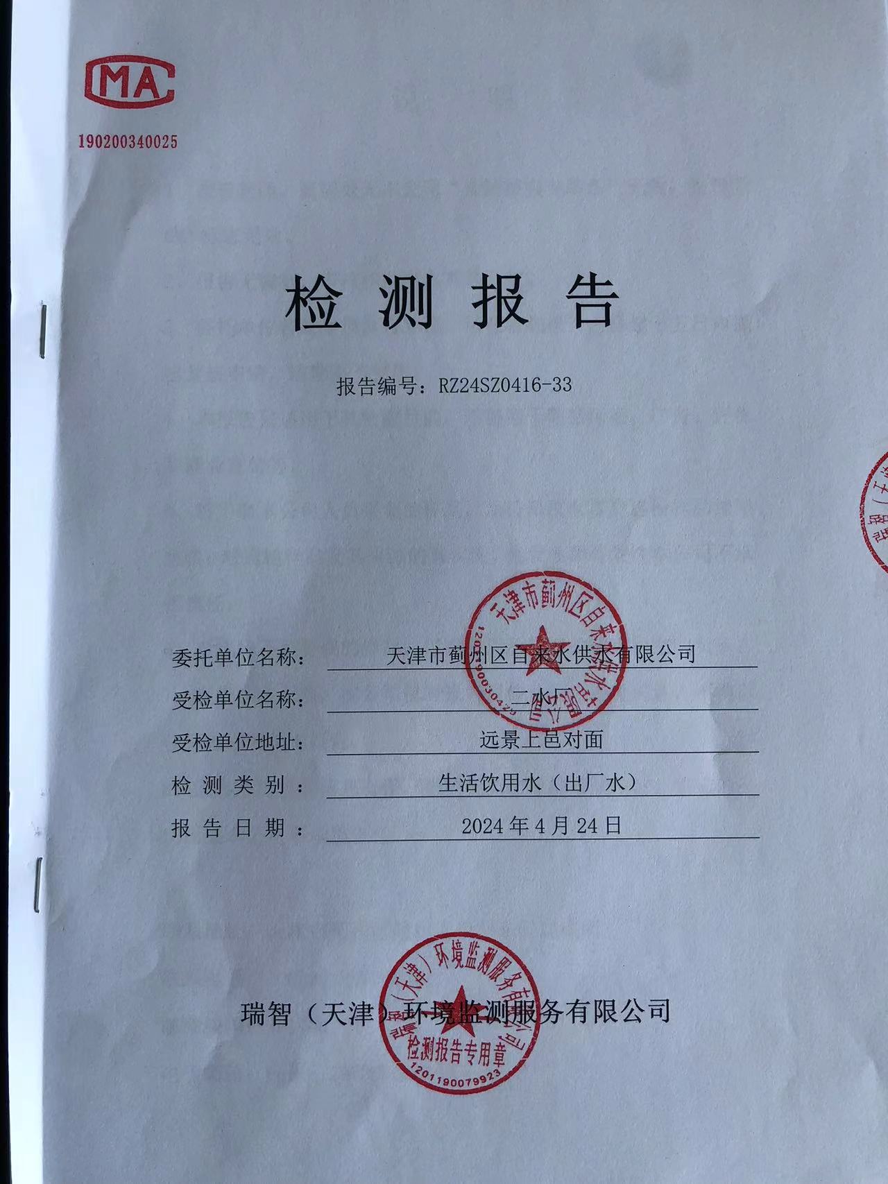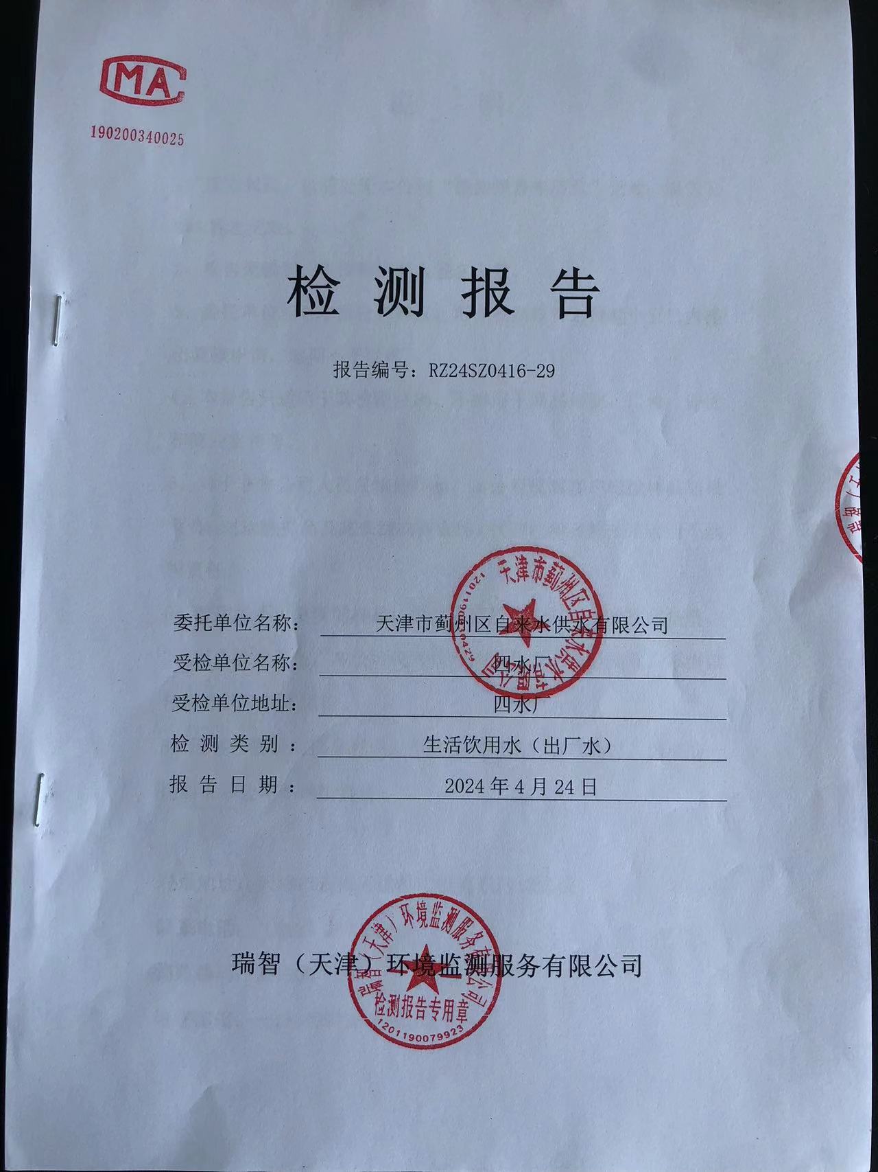 2024年4月份水質(zhì)檢測報(bào)告