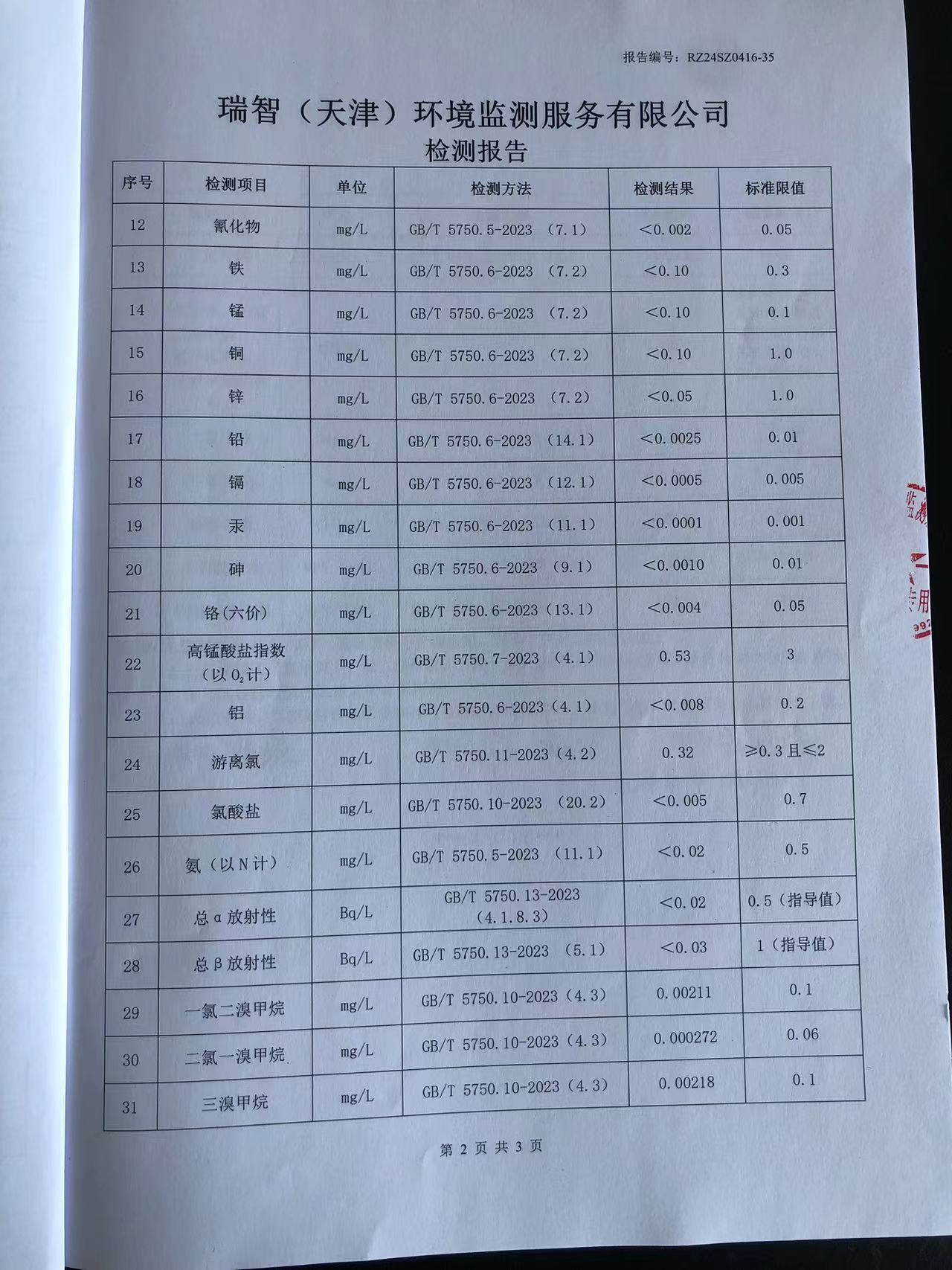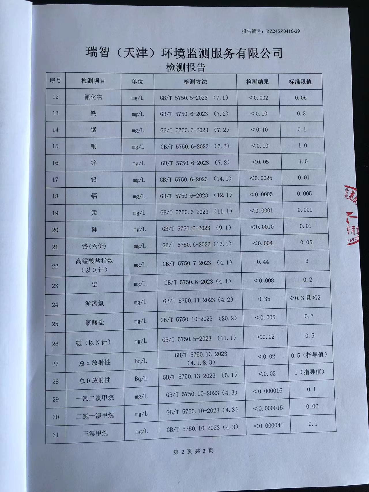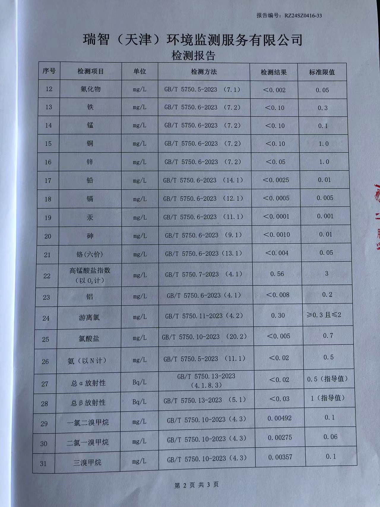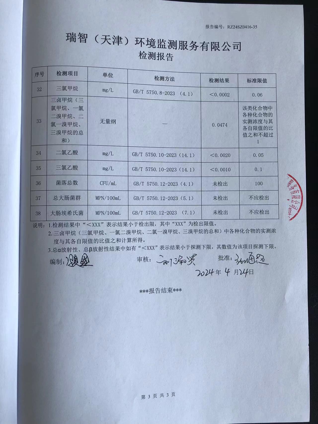 2024年4月份水質(zhì)檢測報(bào)告