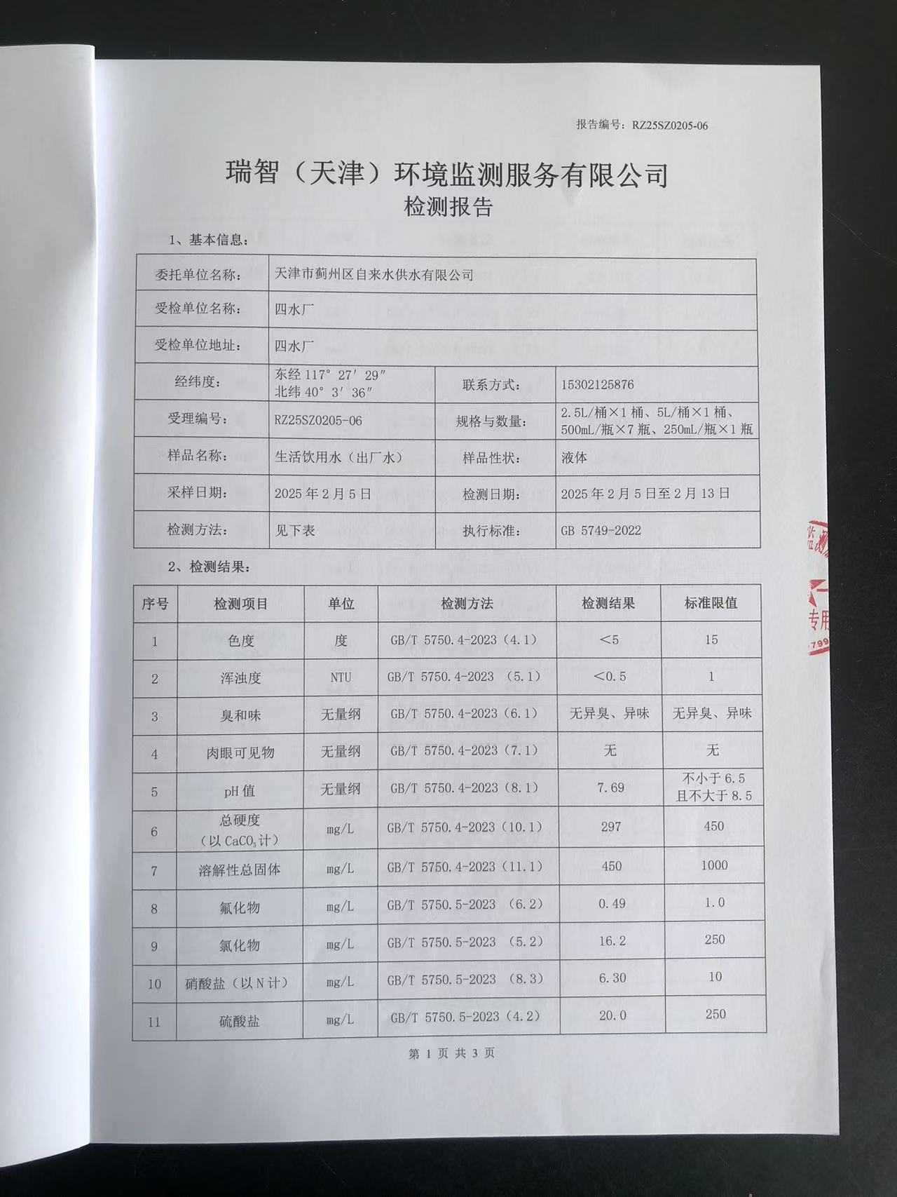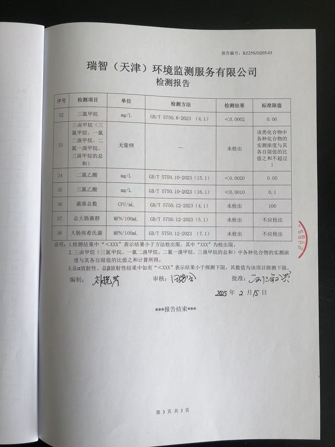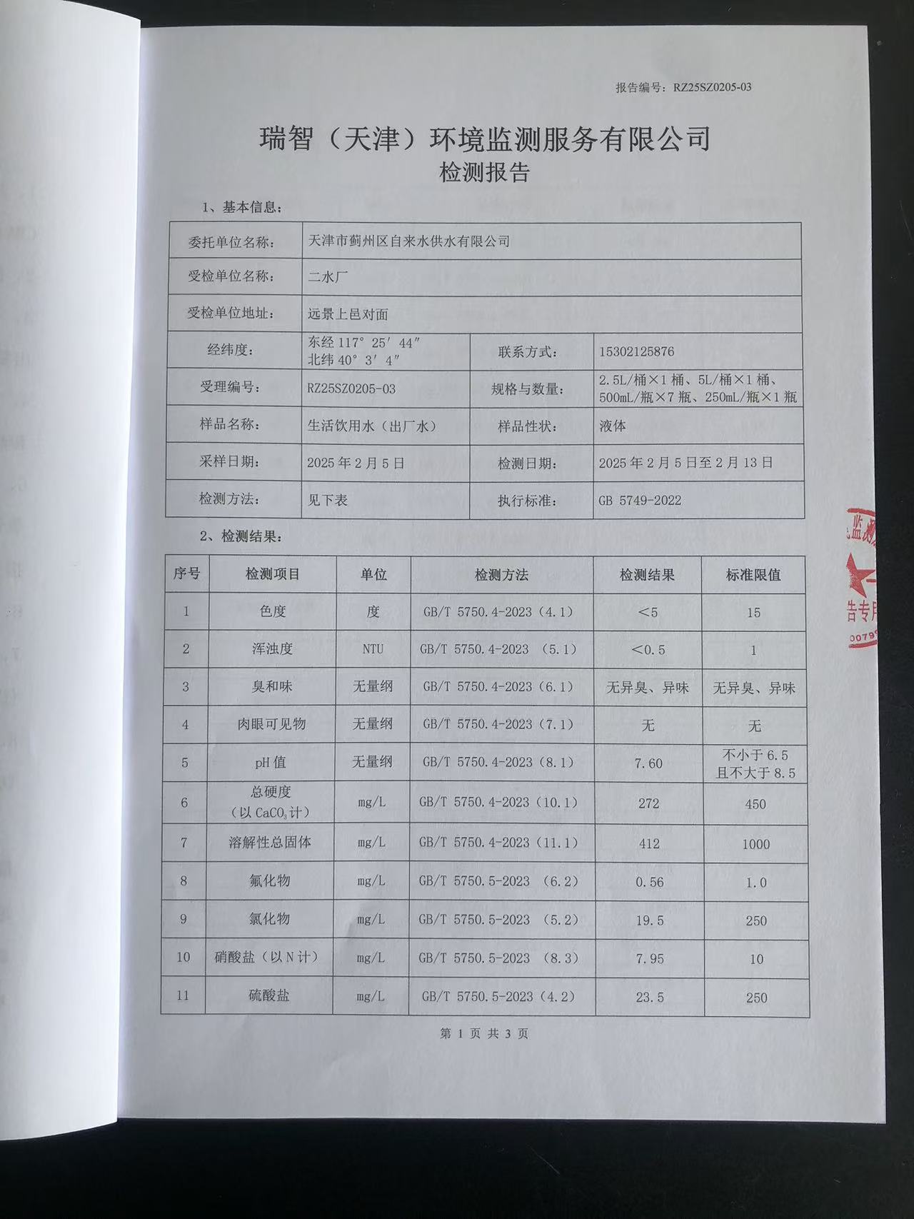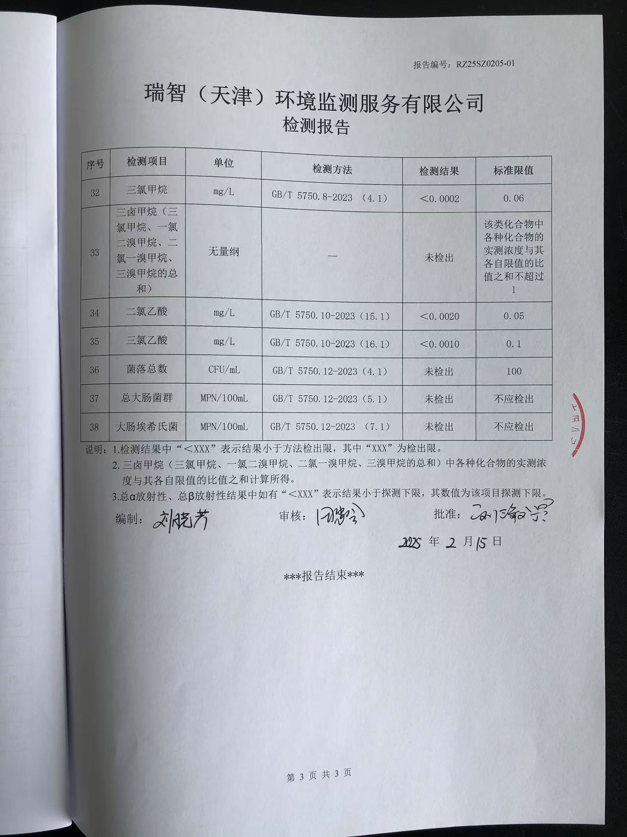 2025年2月份水質(zhì)檢測報(bào)告