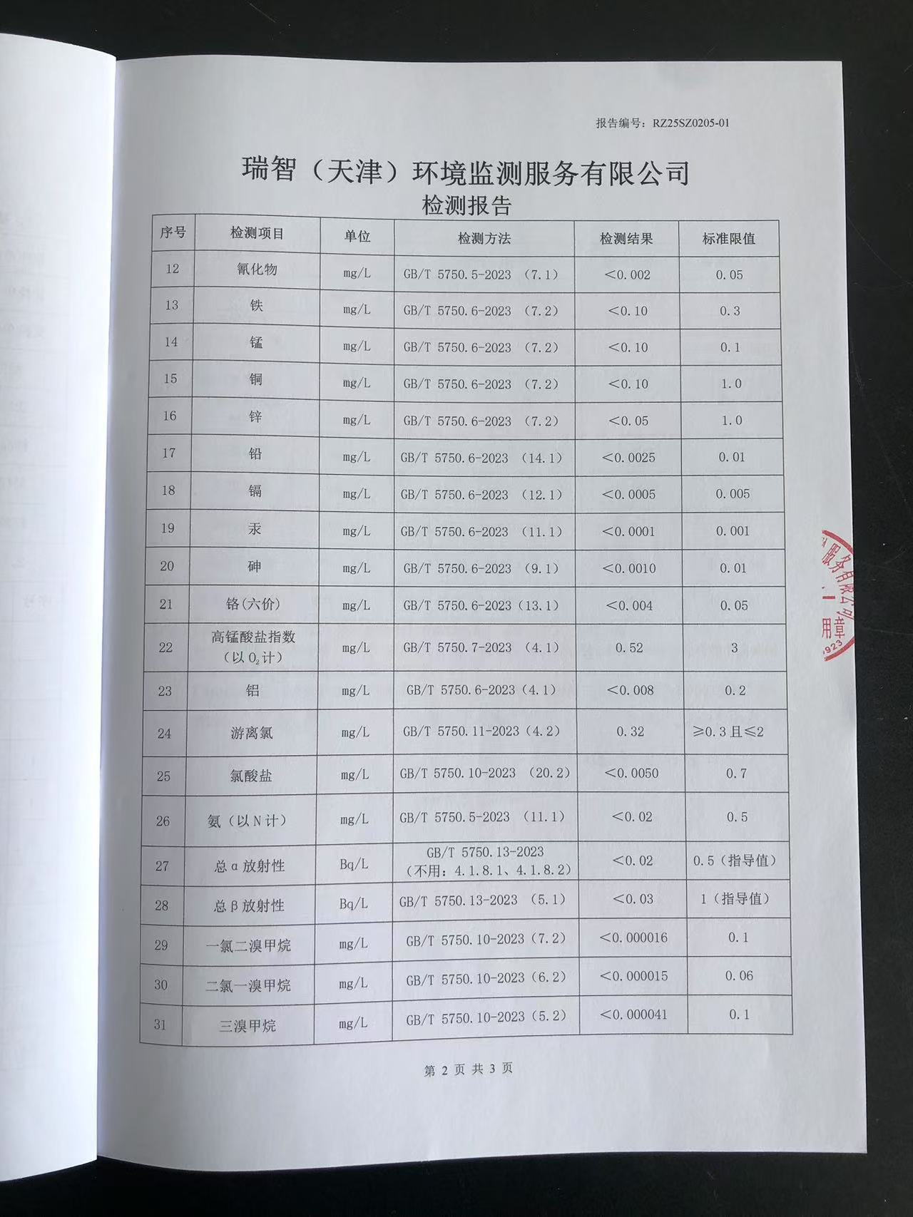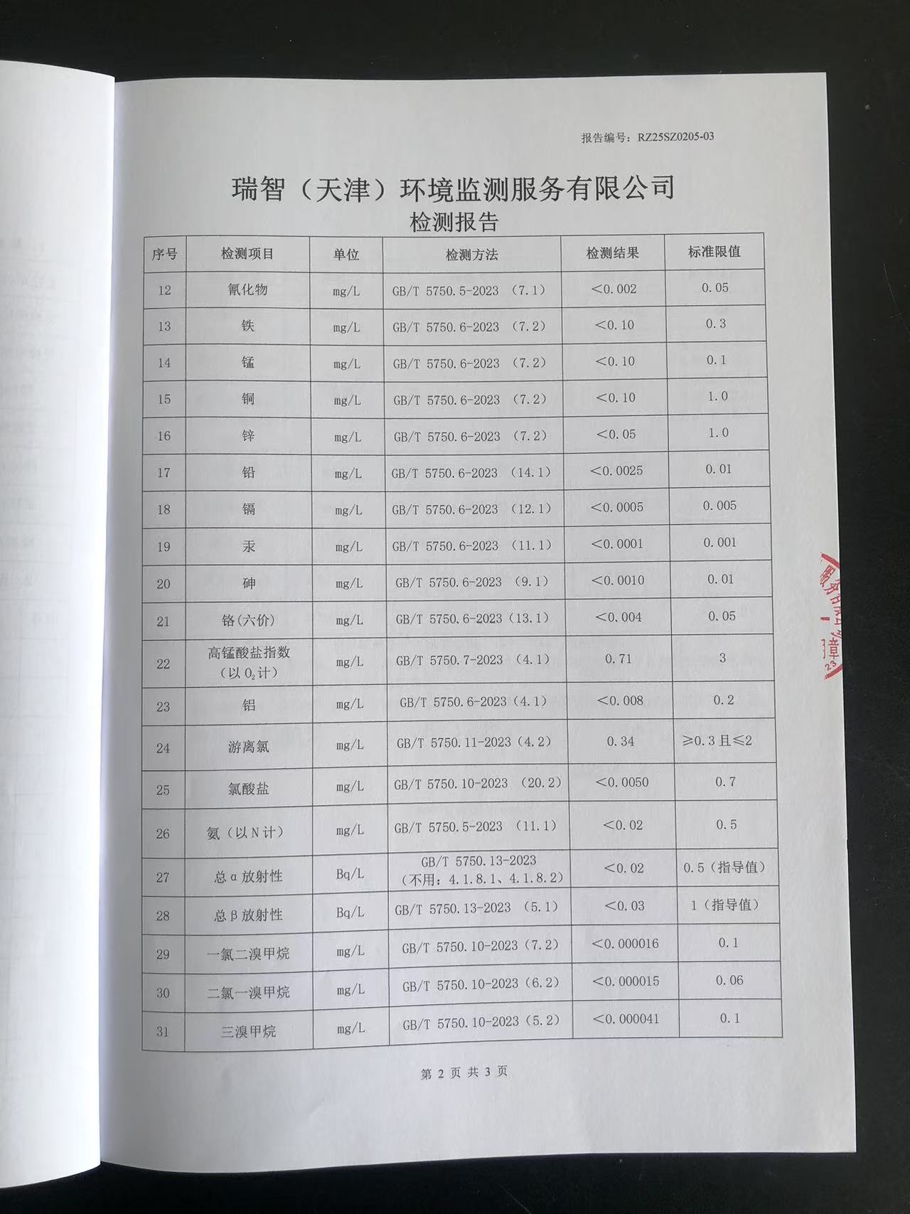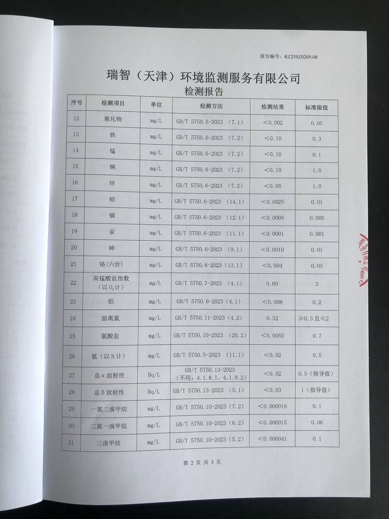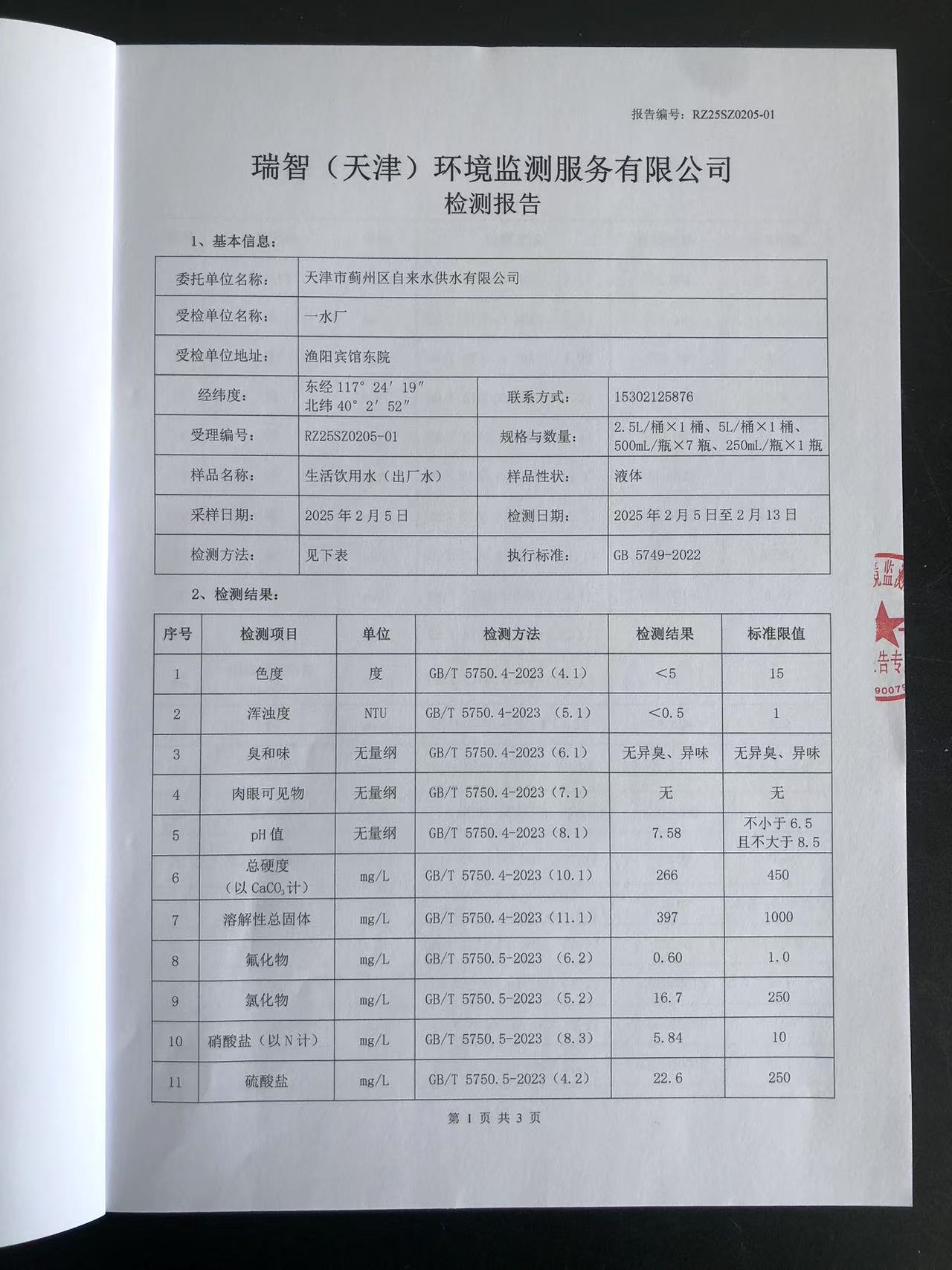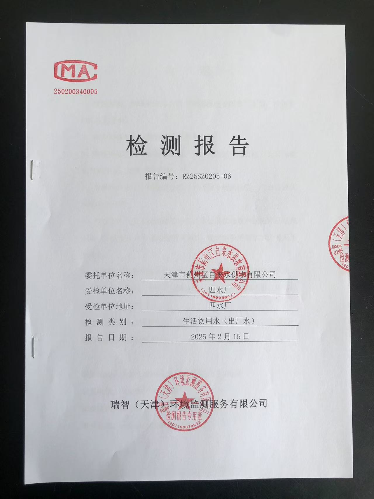 2025年2月份水質(zhì)檢測報(bào)告