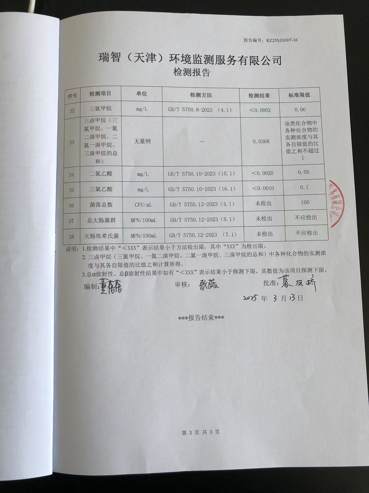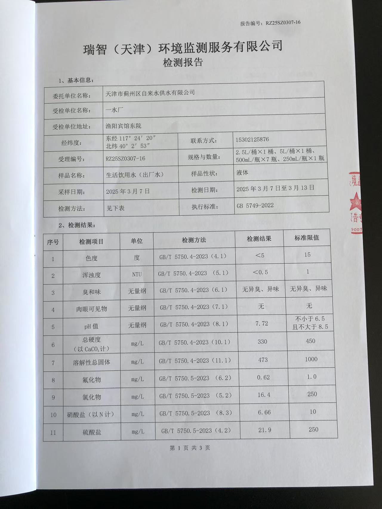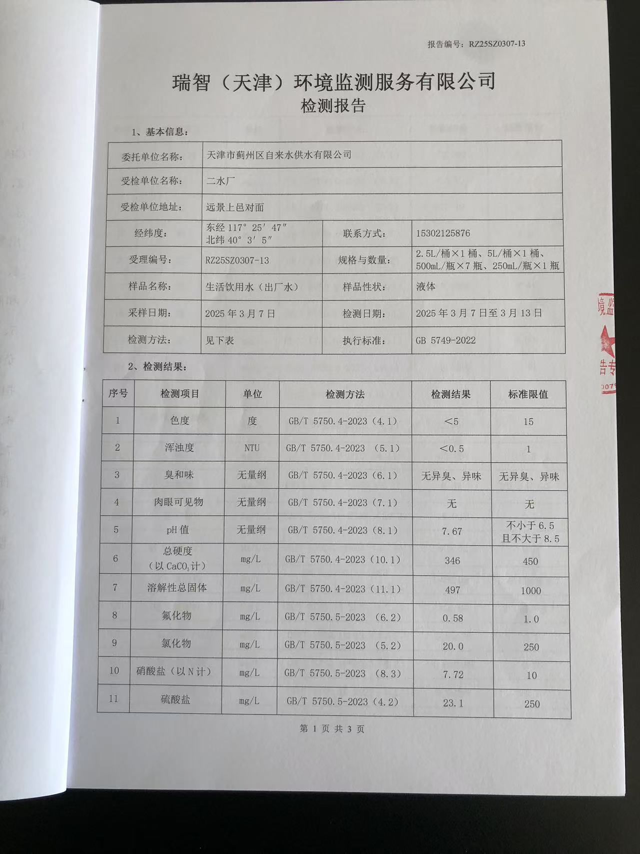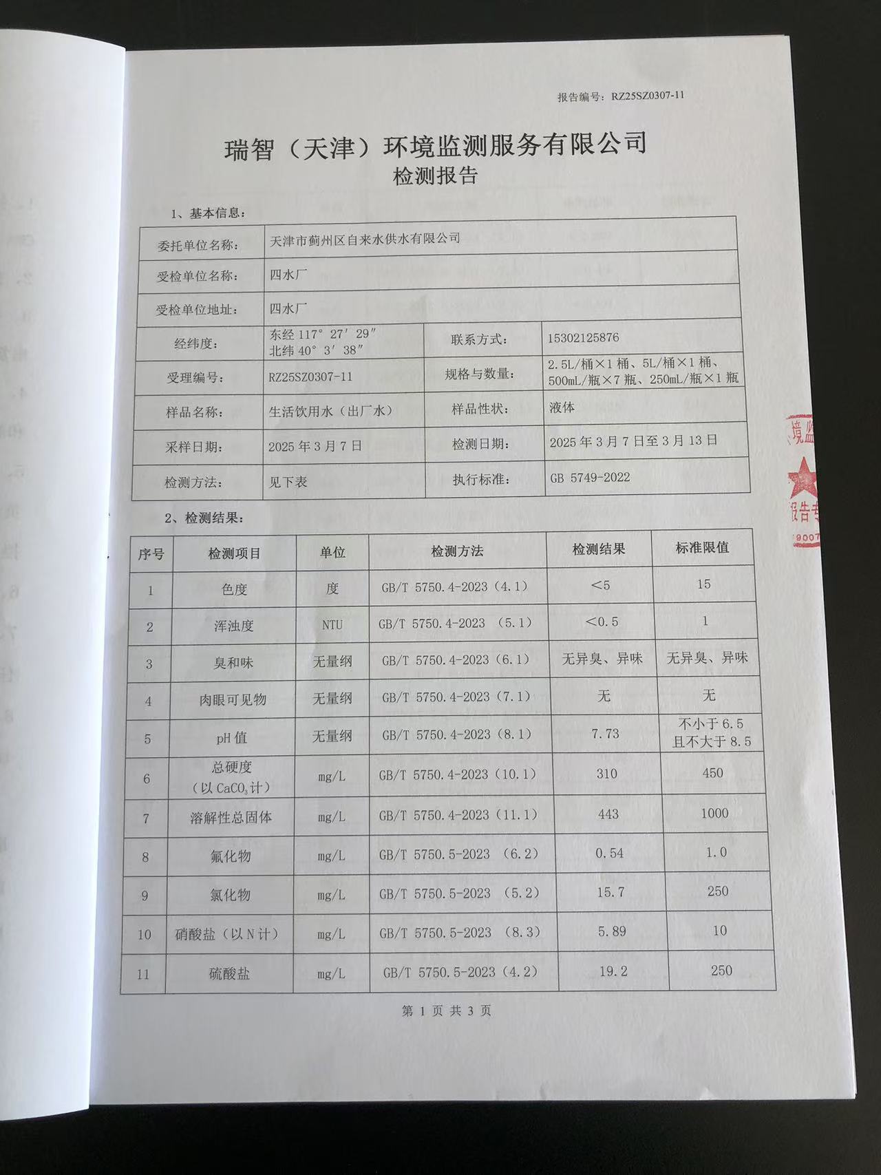 2025年3月份水質檢測報告