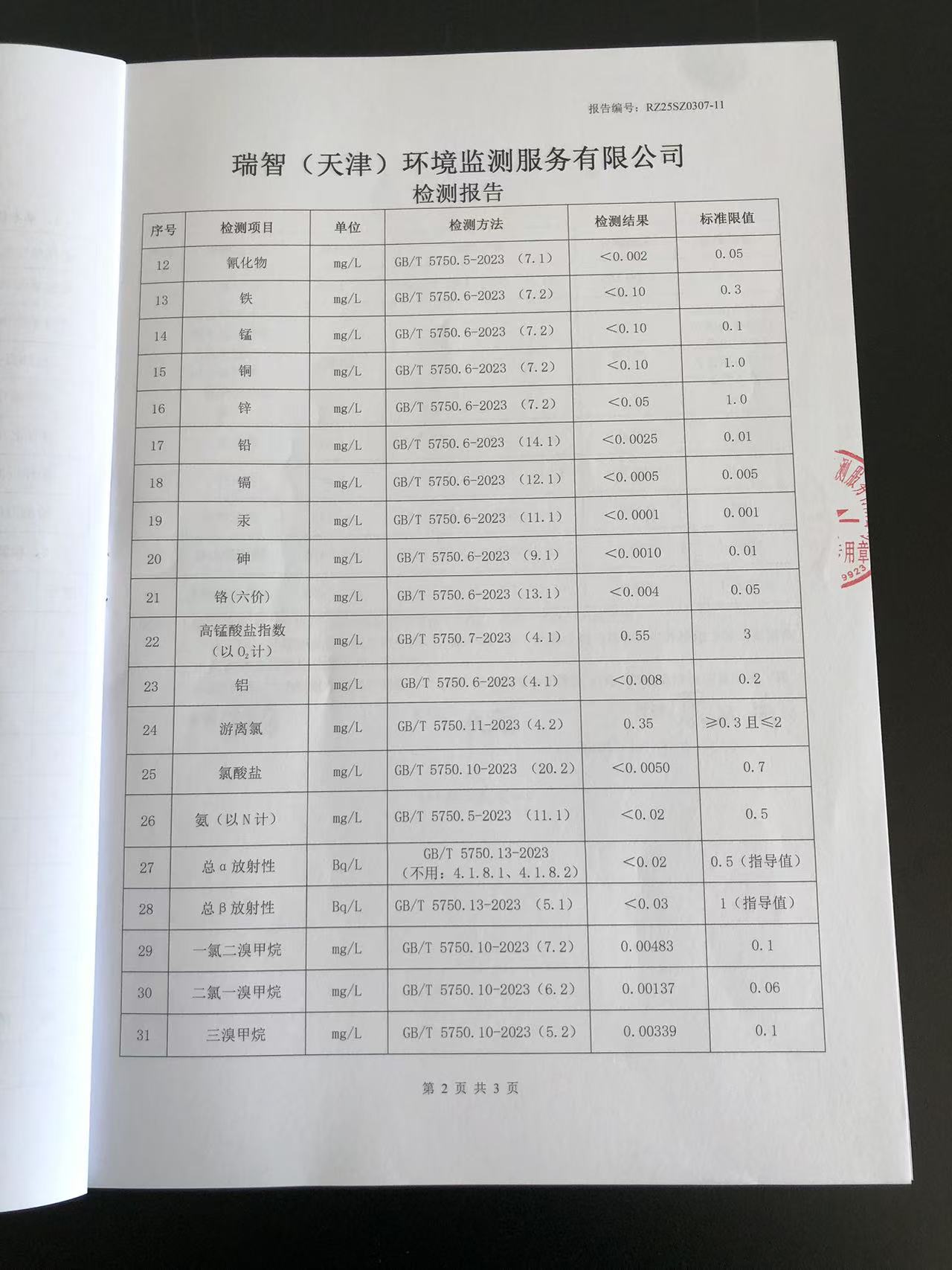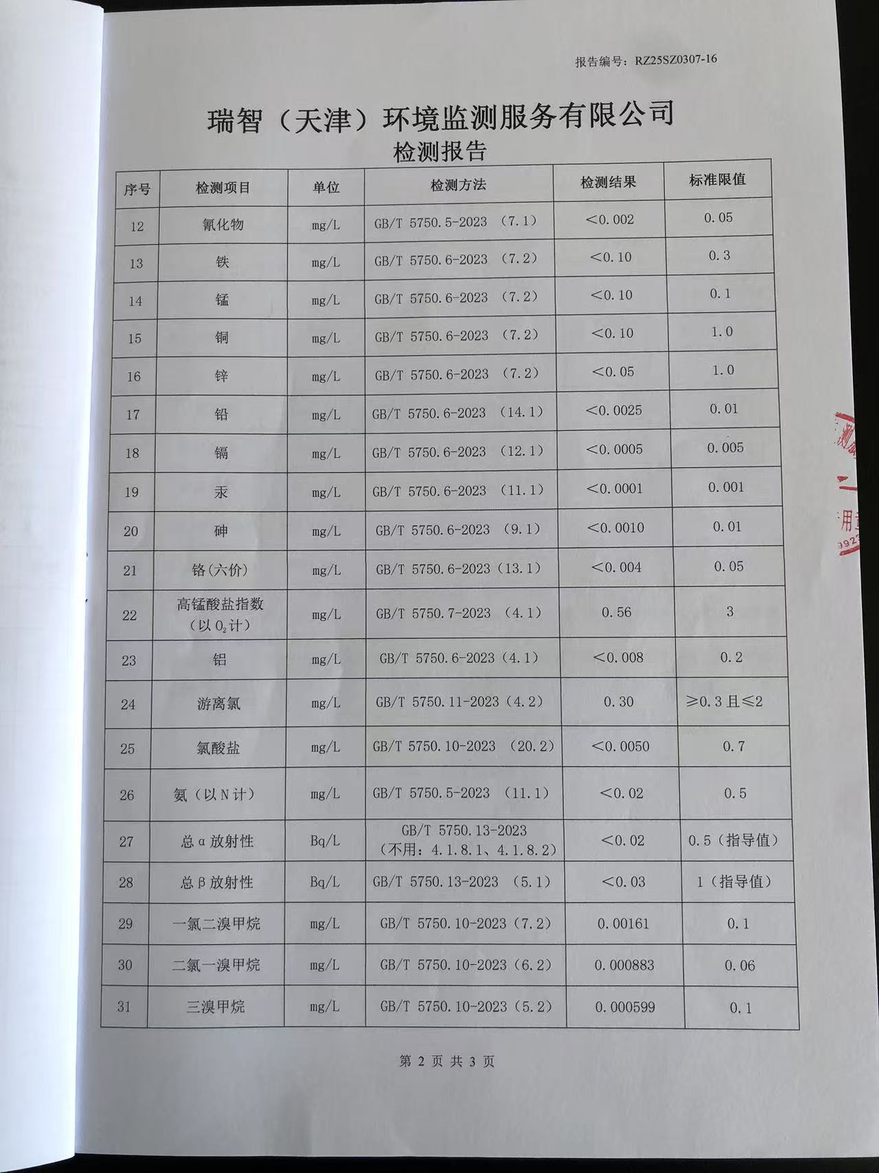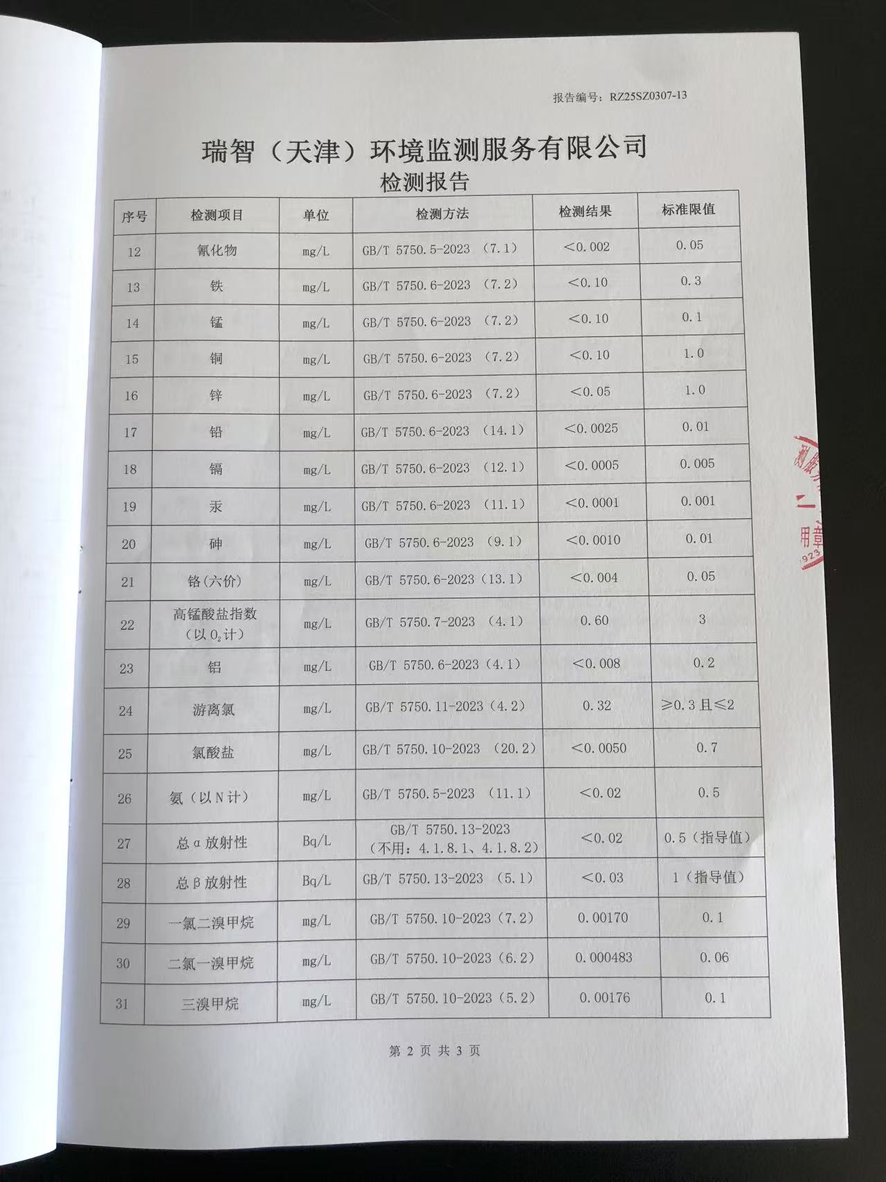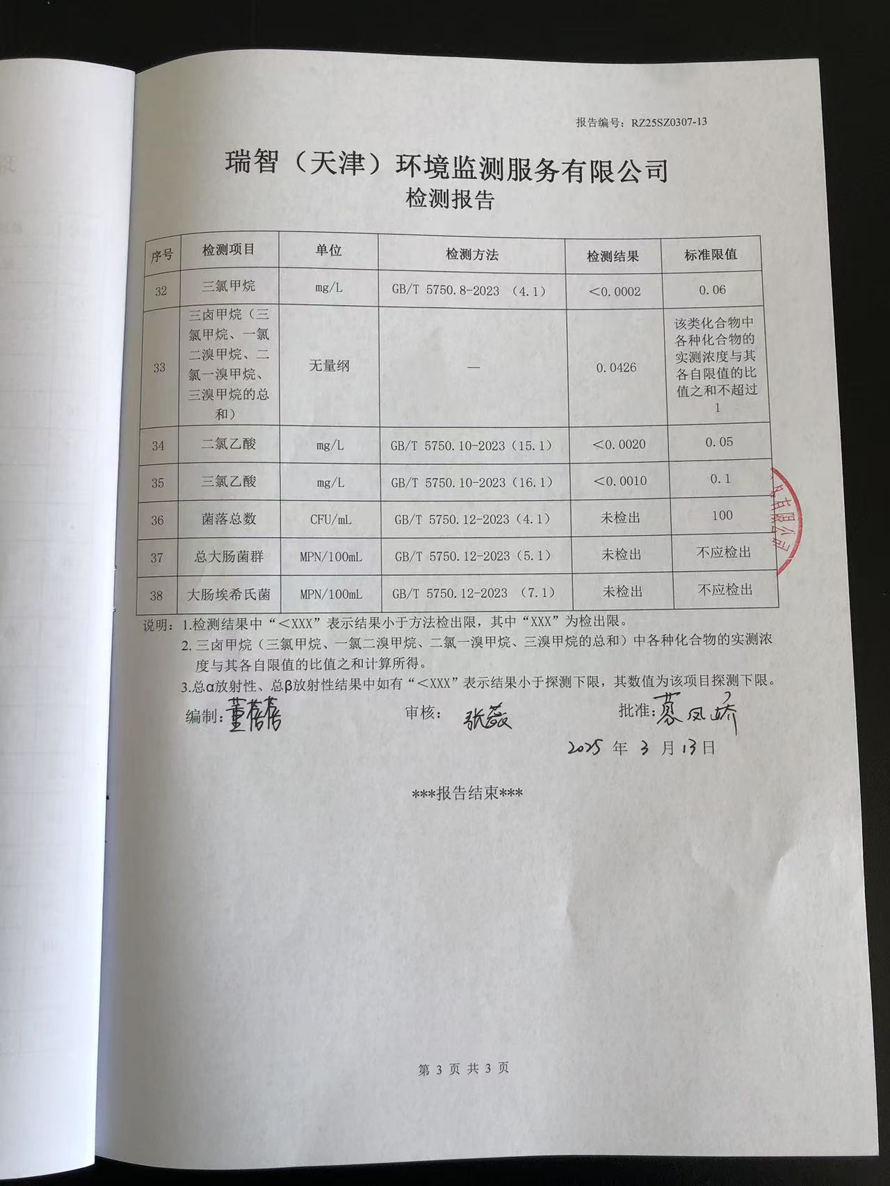 2025年3月份水質檢測報告