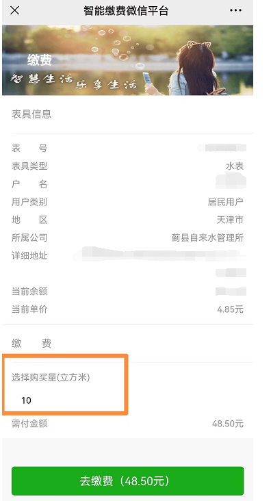 掃描二維碼關(guān)注微信公眾號或微信搜索“天津市薊州區(qū)自來水供水有限公司”公眾號并關(guān)注,如圖