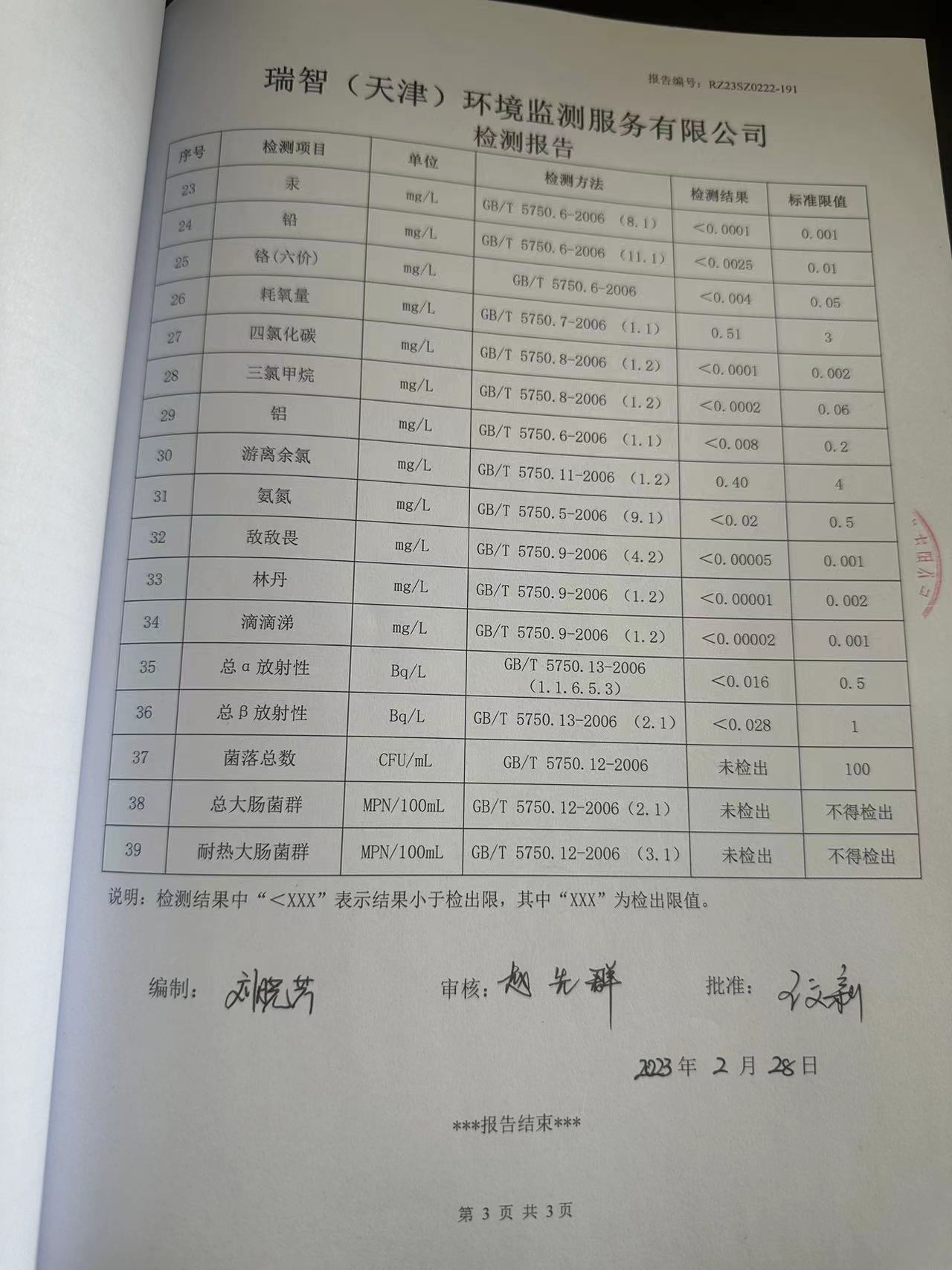 2023年2月份水質(zhì)檢測(cè)報(bào)告